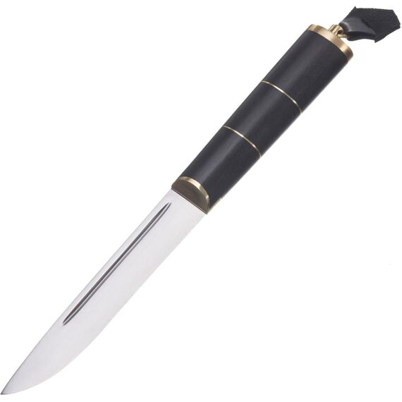 Очень красивый и аккуратный Абхазский нож в среднем размере. Изящное изделие с тонкими прямыми линиями и латунными элементами превосходно сочетается с чехлом ручной работы, выполненным в лучших традициях Абхазии. Нож Абхазский Средний превосходно сочетает в себе глубокие традиции оружейников Абхазии с современными материалами и термообработкой. Хотя нож очень красив и является превосходным подарком людям имеющим вкус, он также благодаря своей конструкции и надежным материалам предназначен для серьезной работы.