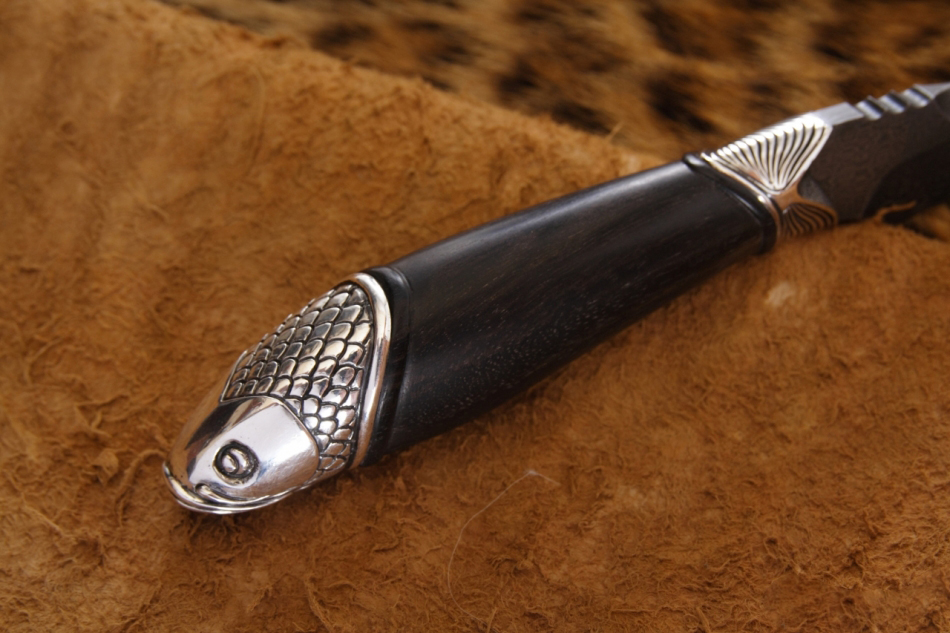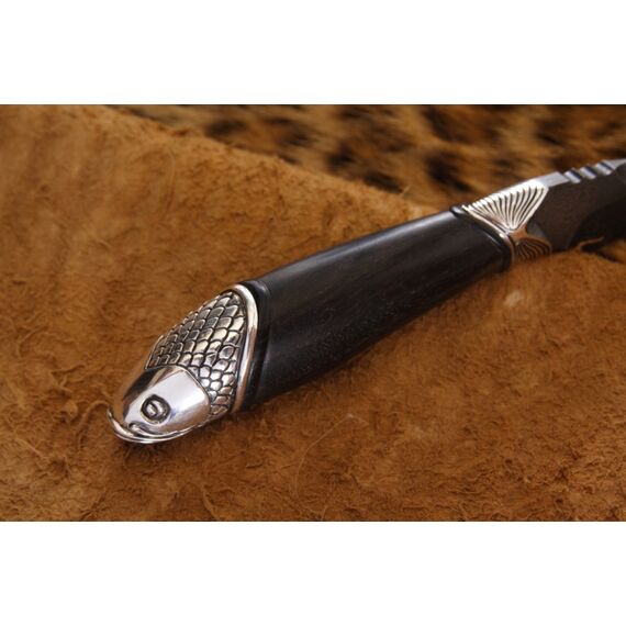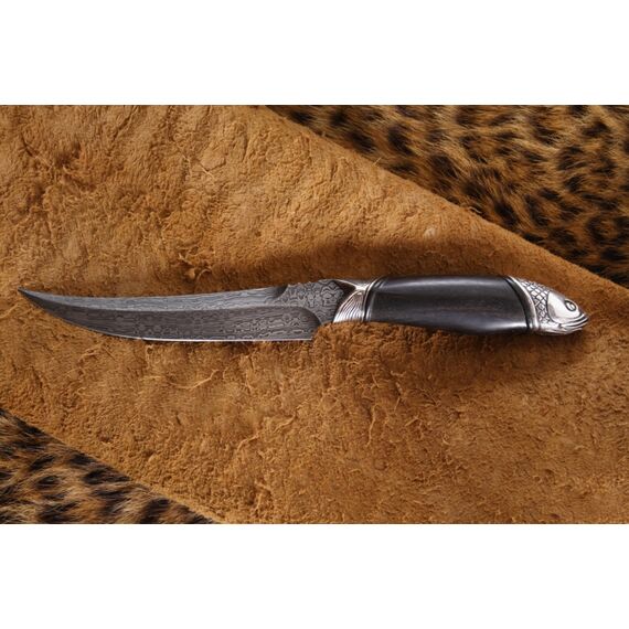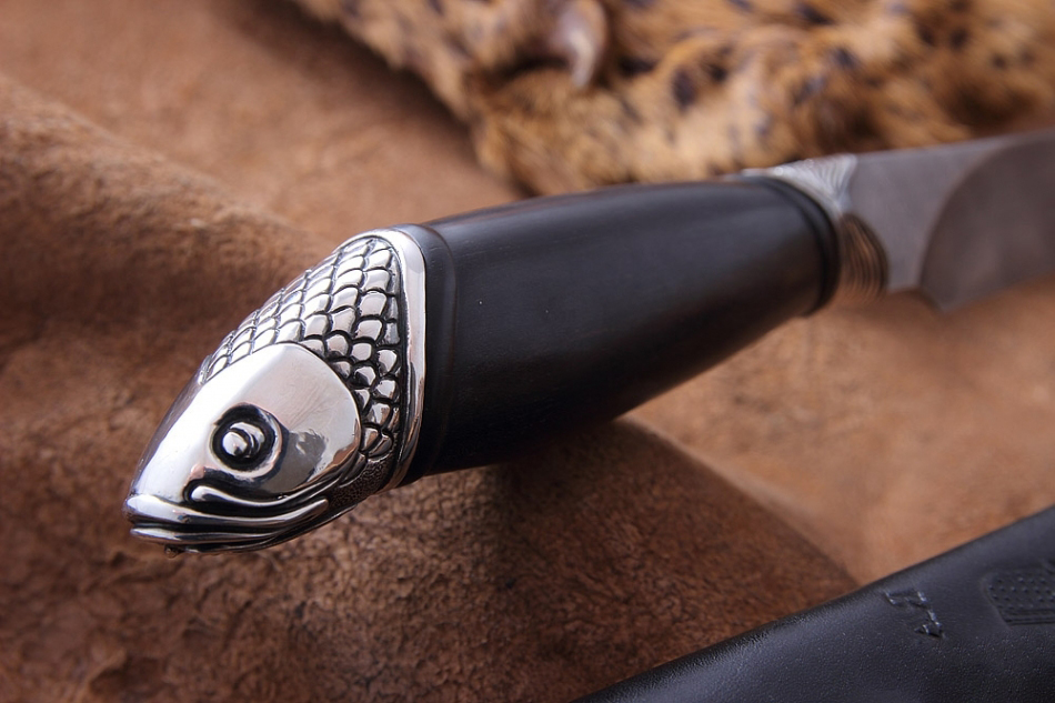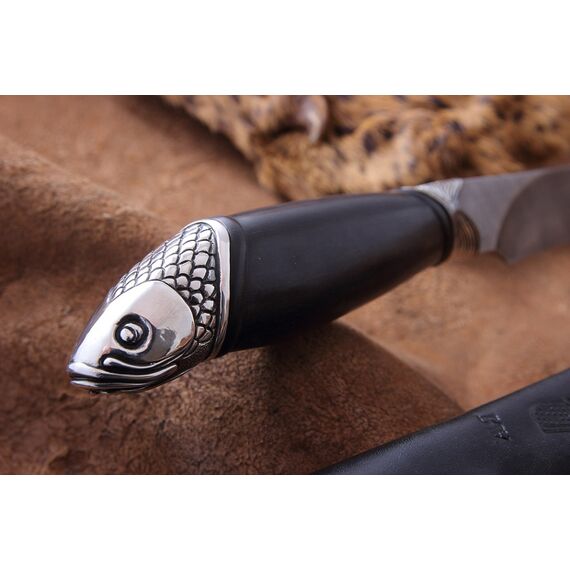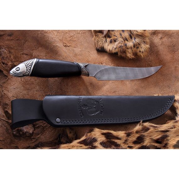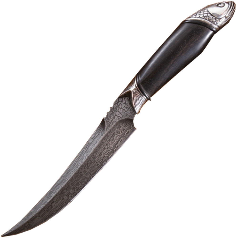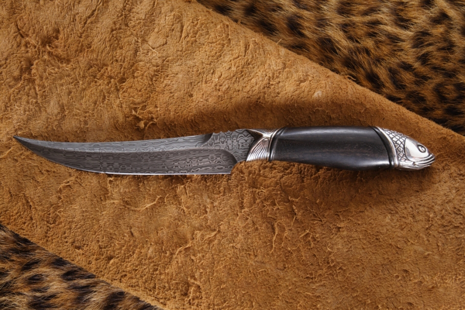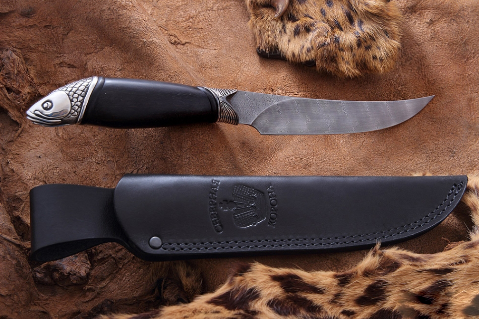 Нож, который используется на охоте или рыбалке, часто служит тотемом, помогающим настроиться на нужный лад и получить удовольствие от процесса. Рыбацкий нож «Амур» компании Северная Корона оснащен клинком из дамасской стали. На клинке виден узор, который появляется в процессе ручной ковки. Рукоять ножа выполнена в форме редкой рыбы, поймать которую большая удача. Сочетание этих элементов делает нож прекрасным подарком для ценителей активного отдыха. Нож украсит кабинет или гостиную комнату. А может стать надежным помощником на охоте или рыбалке.