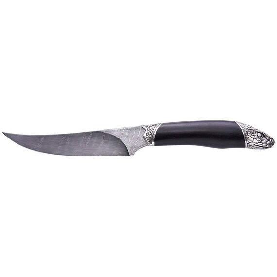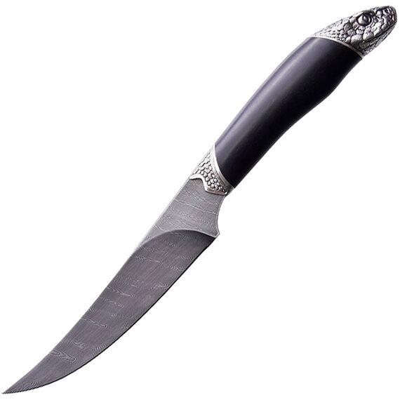 Северная корона Анаконда — отличный нож для туризма и рыбалки. Часто служит тотемом, помогающим настроиться на нужный лад. Достойный продолжатель традиций по созданию русских полевых ножей. Навершие рукояти выполнено в форме головы змеи. Плавный изгиб обуха клинка символизирует движение. Змея опытный и сильный хищник. Такой нож подчеркнет сильный характер своего владельца. Змея считается мудрым животным. Нож покажет, что владелец человек уравновешенный, не принимает поспешных решений.