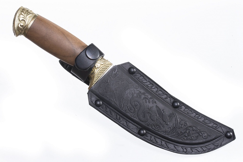 Нож «Гюрза-2»/Кизляр/ 012131 (AUS-8, худ. оформлен., рукоять дерево, гарда латунь)