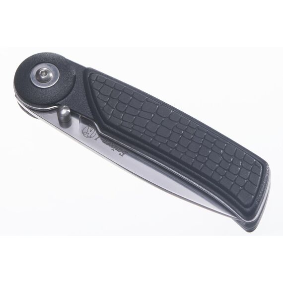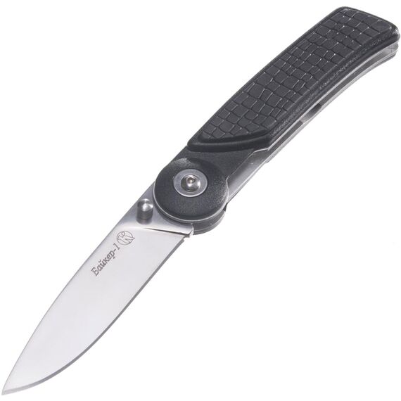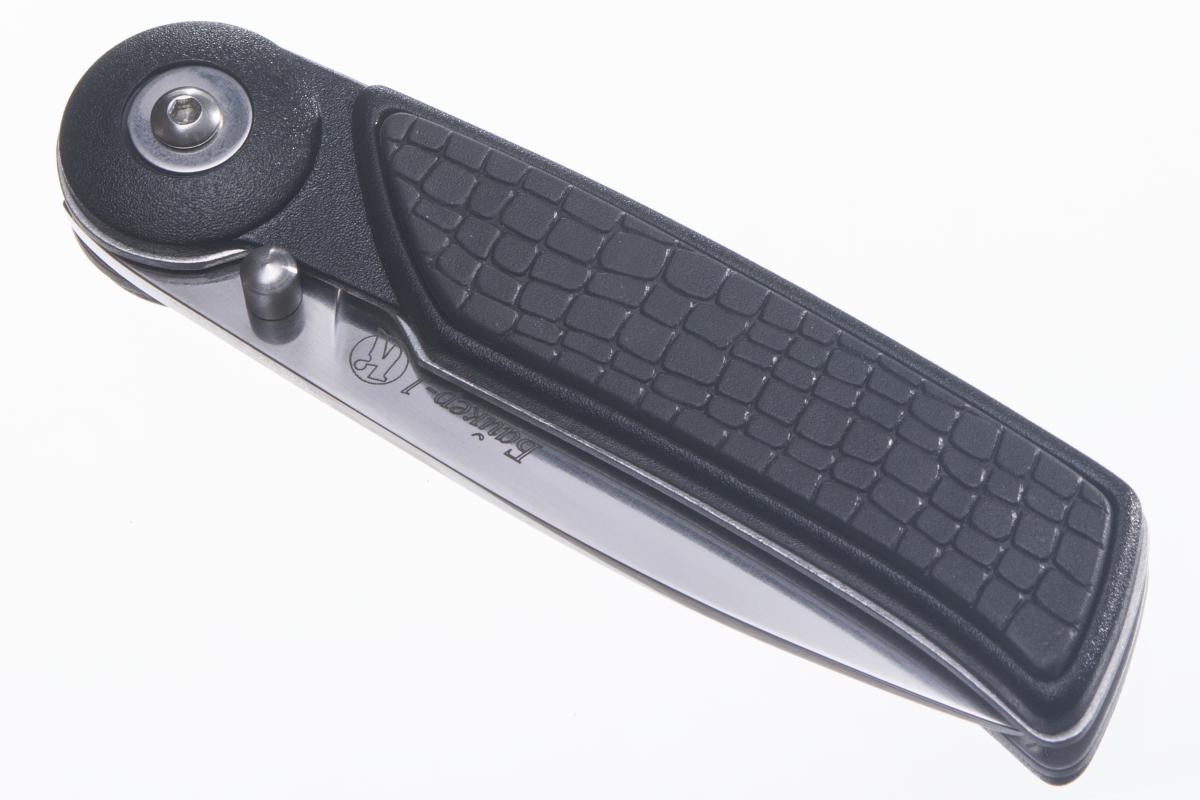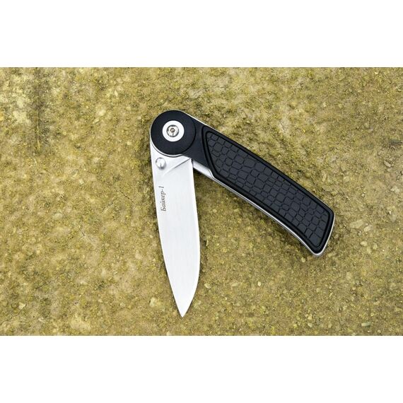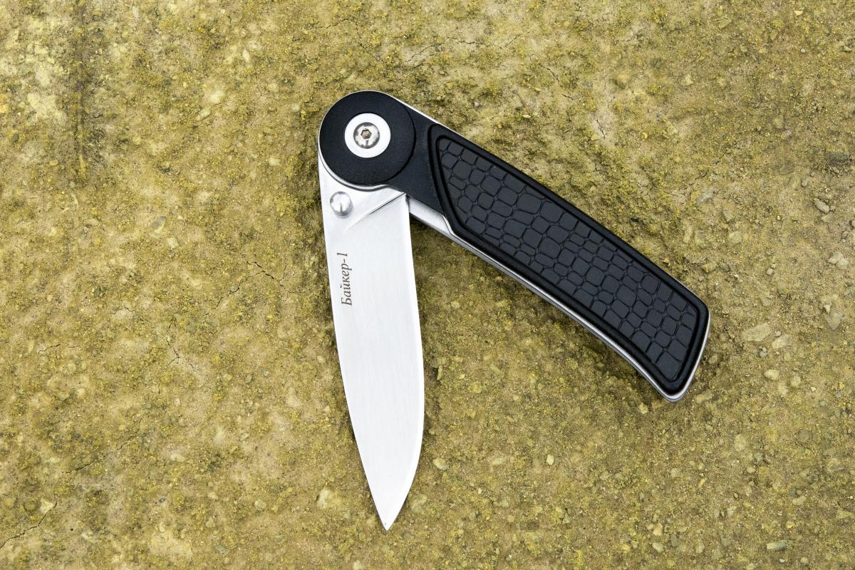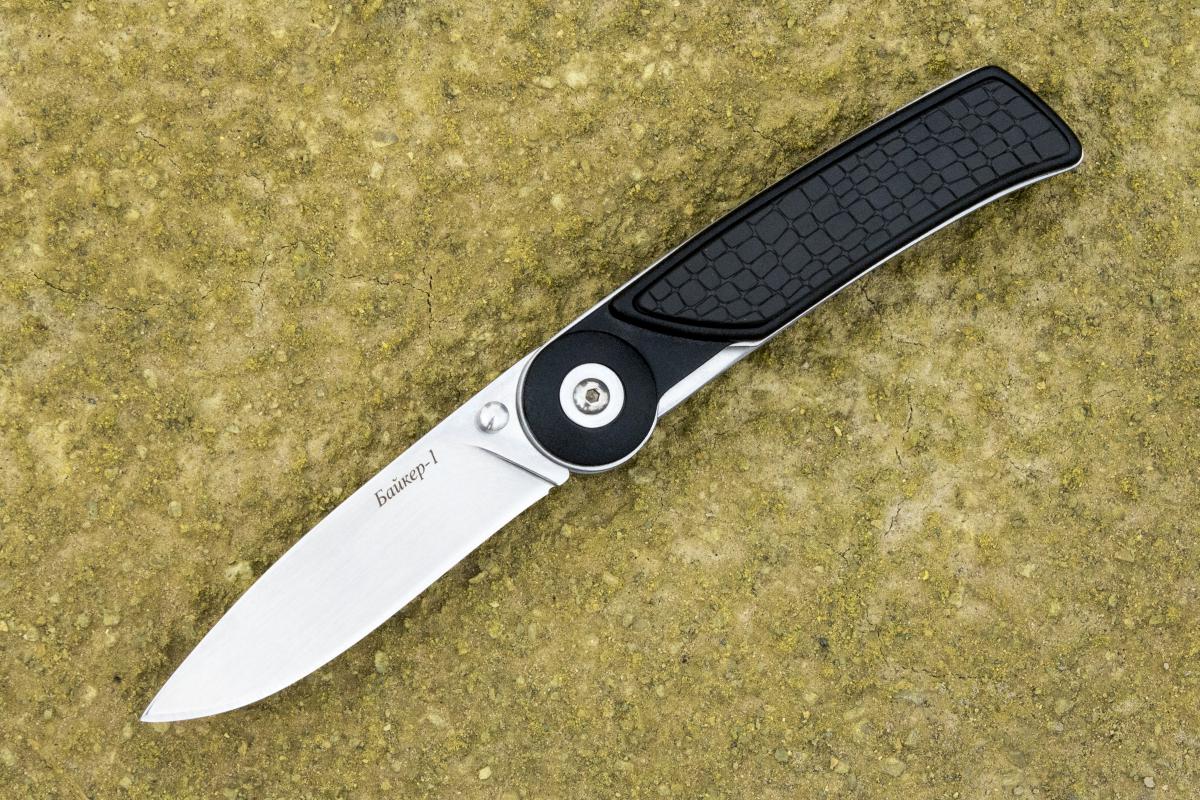 Нож складной Байкер-1 Кизляр, Россия – удобный рабочий нож для тяжелых работ. У своих владельцев заслужил репутацию “неубиваемого” труженика. Конструкция ножа складная, с линейным замком. Клинок длиной 98 мм имеет копьевидную форму. Заточка вогнутая с фальшлезвием, либо клиновая от обуха. Рукоять состоит из склепанных стальных пластин. Со стороны лайнера установлена дополнительная пластина для усиления жесткости рукояти. Ребристые накладки c металлическими притинами из крепкого АБС пластика способствуют крепкому и надежному хвату ножа.