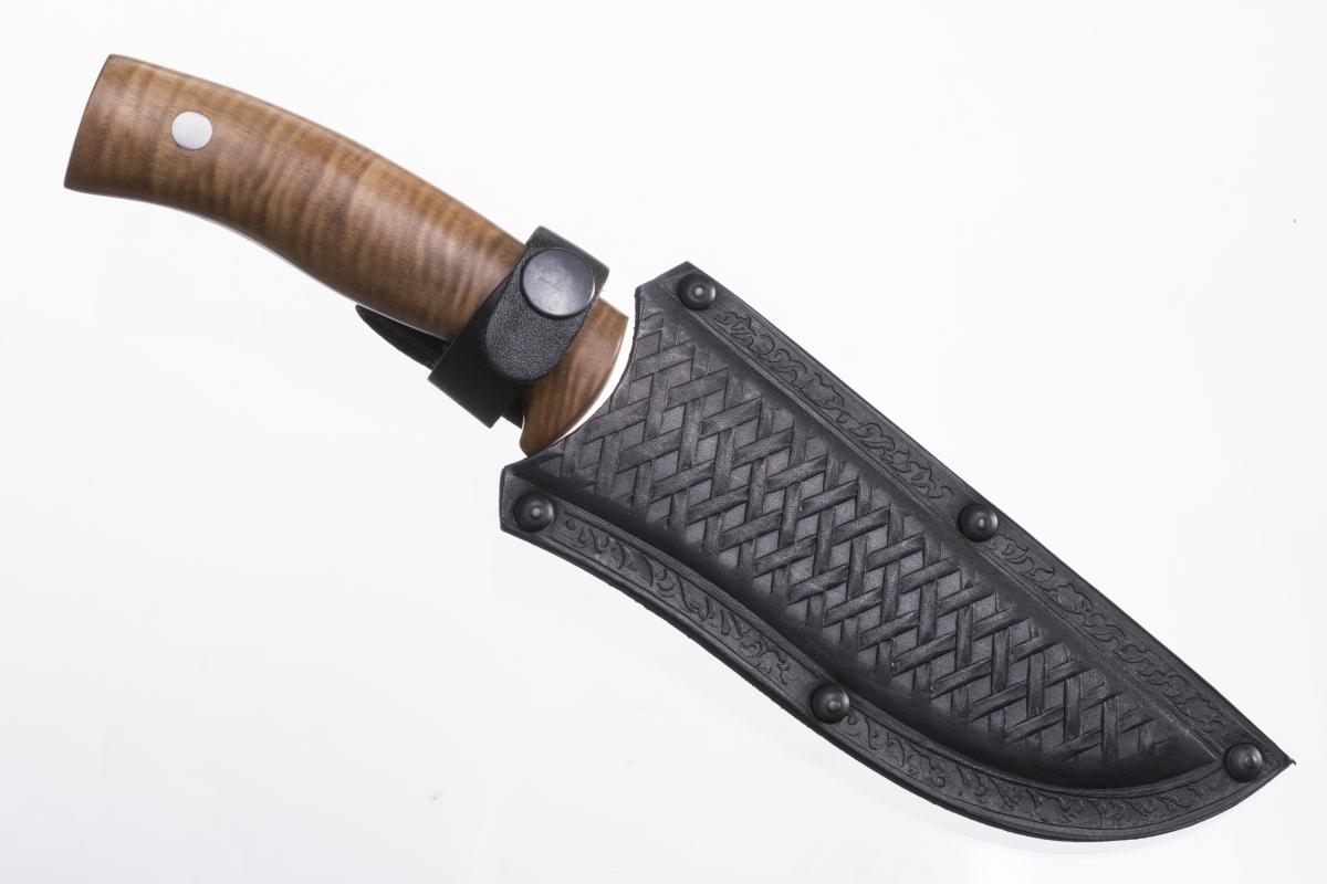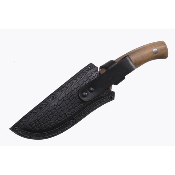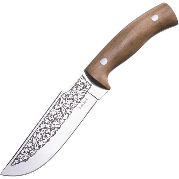 Нож туристический Бекас-2 простой и надежный нож. Минимум украшений, максимум простоты и эффективности! Клинок ножа изготовлен из стали AUS-8, стойкой к коррозии и механическим повреждениям, особая форма клинка, его ширина заточка лезвия обеспечивают как колющие так и хорошие режущие качества. Рукоять выполнена из кавказского ореха, ее эргономичная форма, а также подпальцевое углубление на обухе клинка обеспечивают максимально удобный и надежный хват.