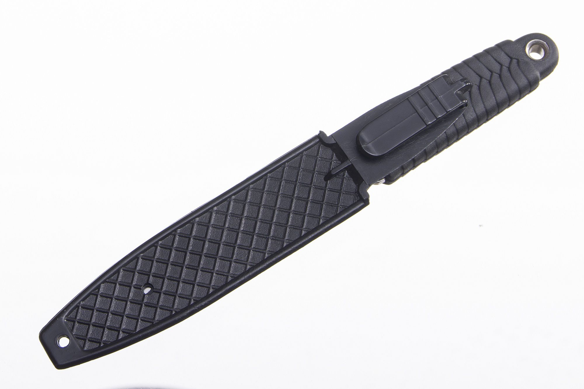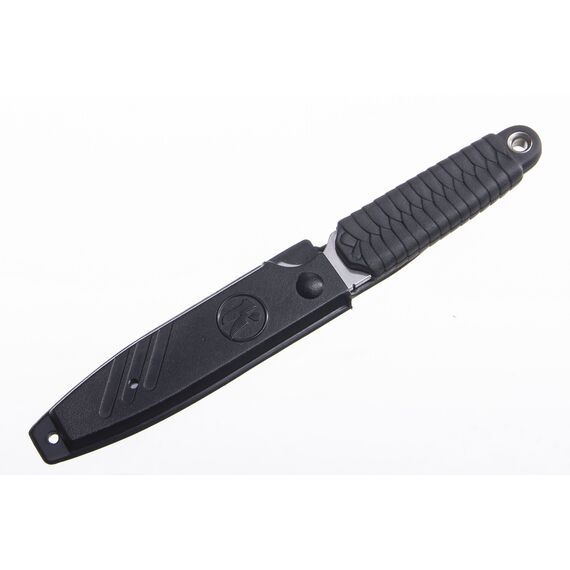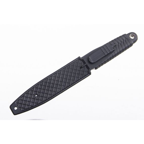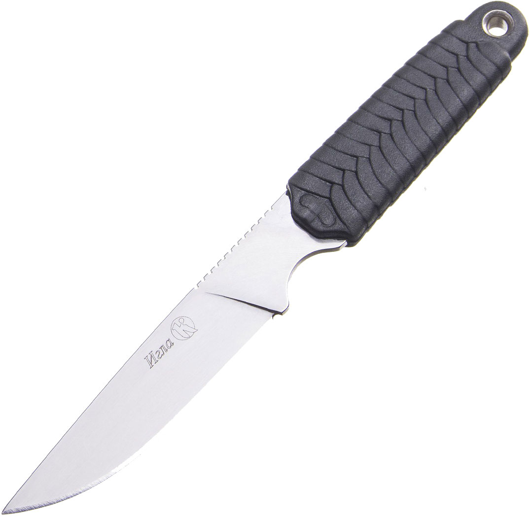 Ножны, входящие в комплект «Иглы» - пластмассовые, с плотной и очень надежной фиксацией ножа внутри, исключающей случайное выпадение клинка, засчет выступа-шпенька на клинке и соответствующего паза в ножнах. Крепление – клипса на ремень вертикального крепления, а также специальное отверстие под шнурок на шею в положении вниз рукоятью.
