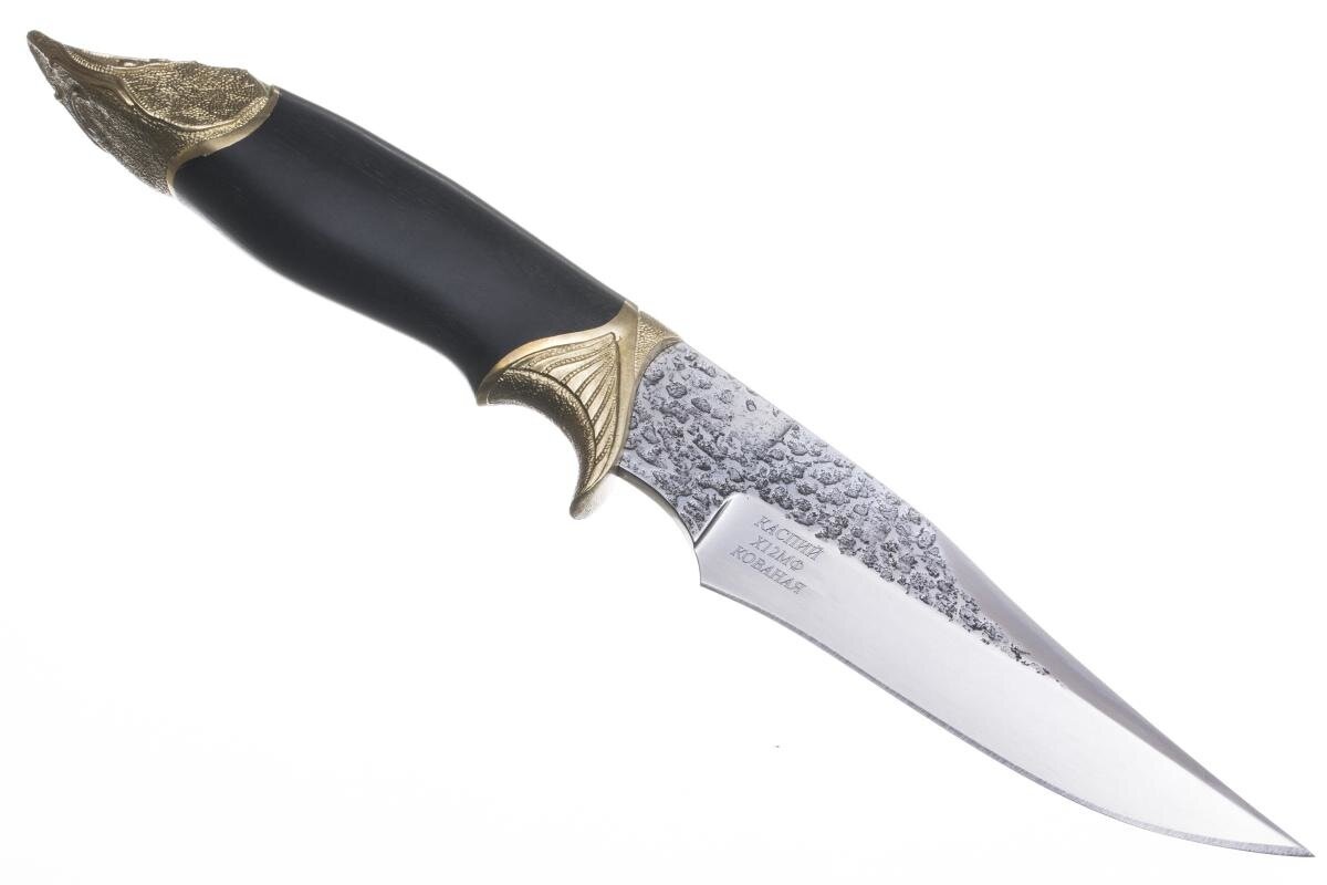 Бюджетный вариант Ножа Каспий, исполненный автором Исаев М. А. Этим ножом хочется просто любоваться. Удобная рукоятка, удачная форма и достаточная длина лезвия, отличное качество кованной стали. Все это делает изделие дагестанских мастеров не только оригинальным сувениром, но и лучшим помощником и на пикнике, и на охоте. При учёте, что нож не является холодным оружием, по конструкции и надёжности ничем не уступает ему.