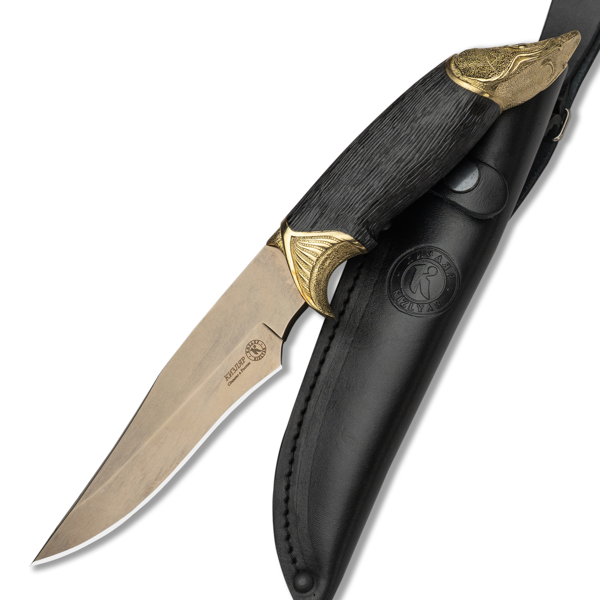Нож Кизляр Каспий 10034 D-2 095731 (авторский худ. офомленный, stonewash серый, латунь)