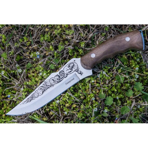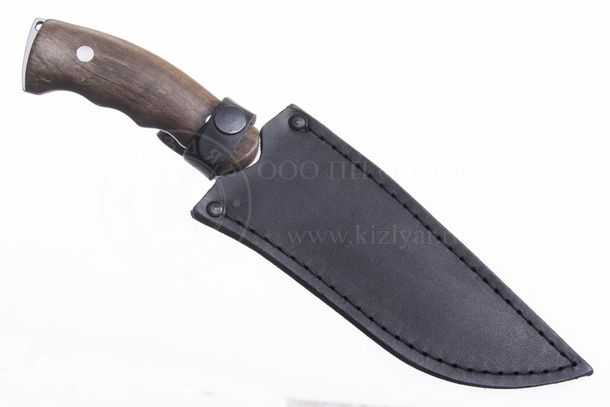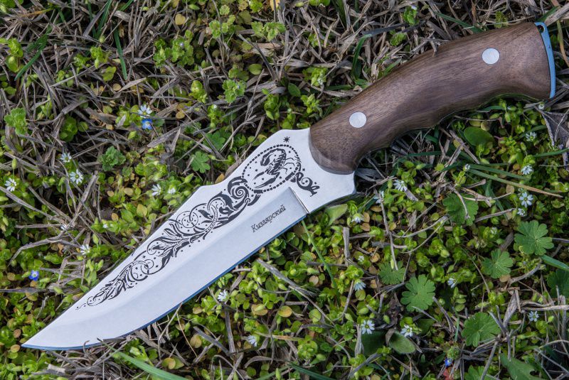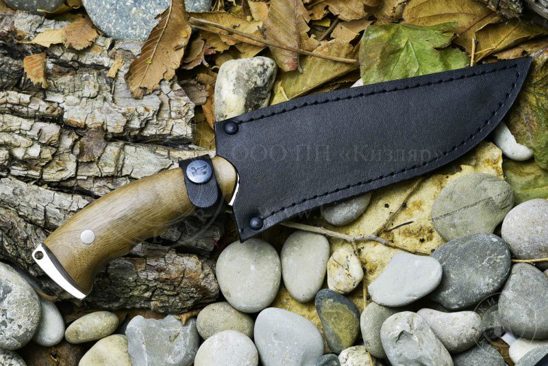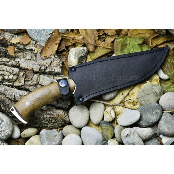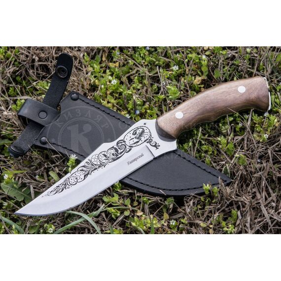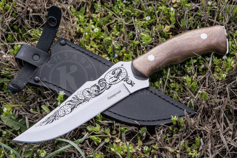 Нож «Кизлярский» относится к разделочным ножам и его можно купить без разрешительных документов. Нож достаточно легкий, эргономичный, а красивый орнамент на клинке, черные поясные ножны из натуральной кожи и фирменная упаковка позволяют преподнести его в качестве подарка.