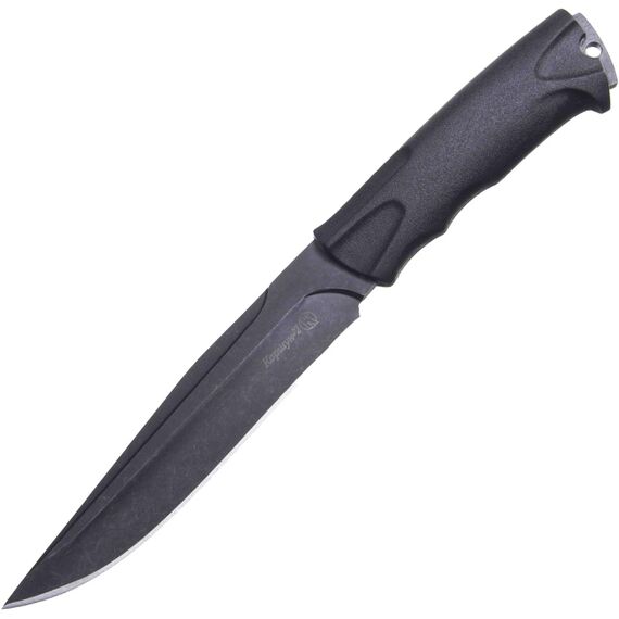 Нож Коршун-2, Кизляр - инструмент, способный управиться как с деликатными задачами, так и с экстремальной работой. Клинок сделан из высококачественной стали AUS-8, сверху нанесено гальваническое покрытие, предотвращающее коррозию и придающее благородный черный цвет. Удобная рукоять из эластрона обеспечивает цепкий хват. Комплект дополнен ножнами из кожи или пластика АБС. Выберите нож с черным лезвием в подарок фанату активного отдыха или ценителю качественных и надежных вещей.