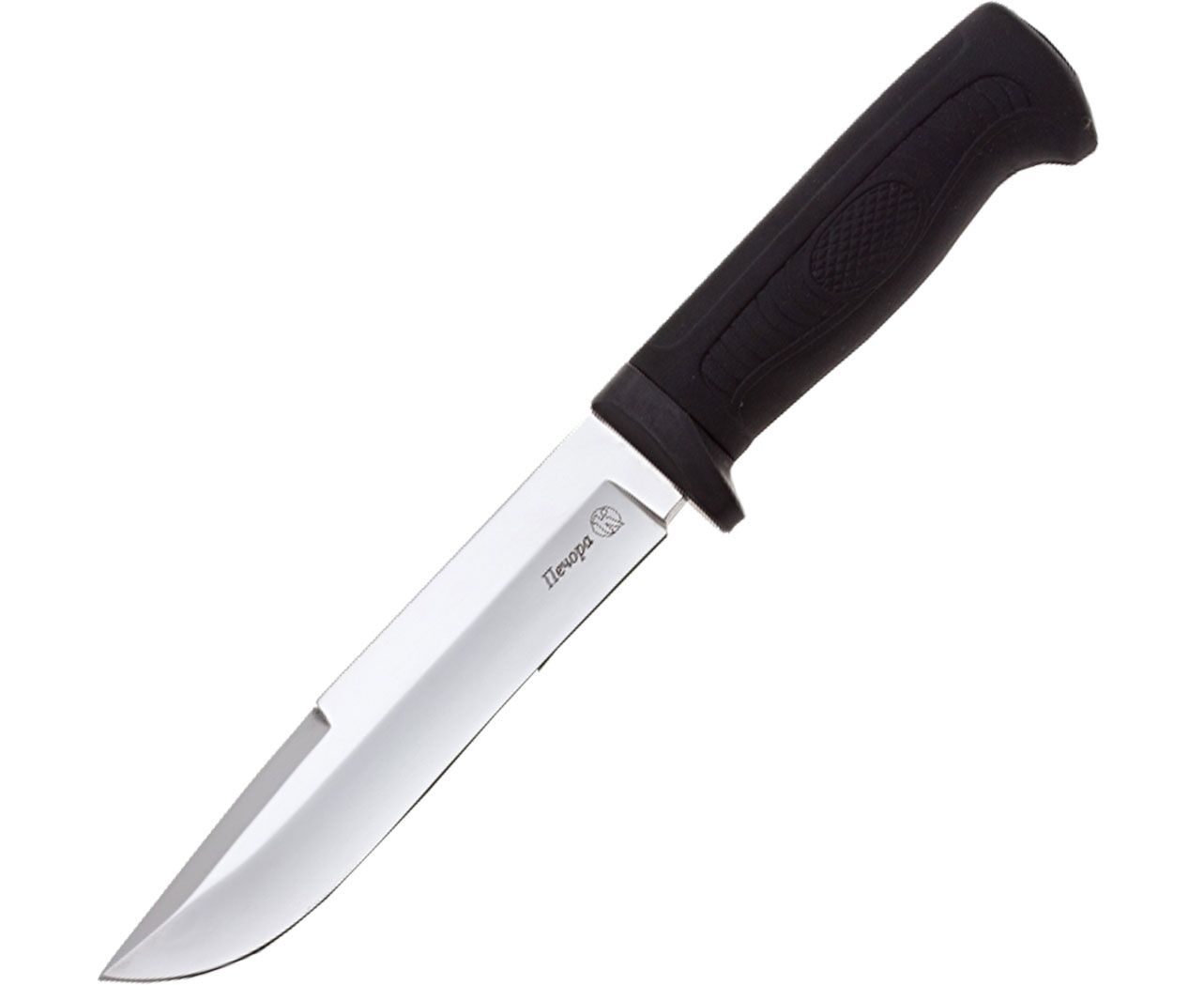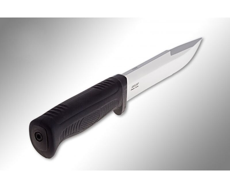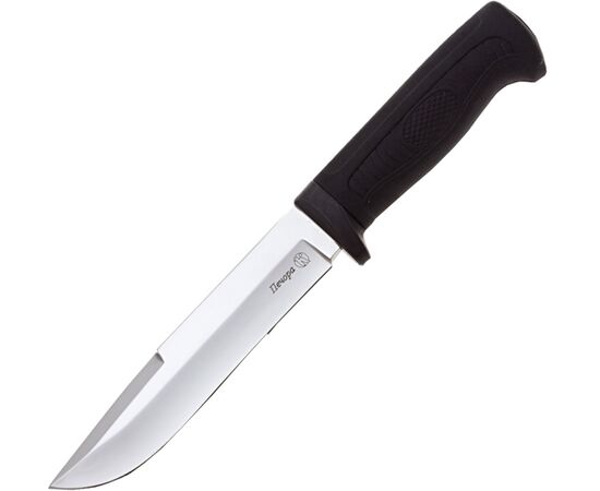 Охотничий нож «Печора» производственного предприятия Кизляр - модель, которая никогда не устареет и еще долгие годы будет оставаться хитом. Клинок классической формы с фальшлезвием, занимающим 1/3 обуха, выполнен из коррозинно-стойкой японской ножевой стали AUS-8. Хорошие режущие свойства ножа достигнуты за счет высоких спусков и вогнутой заточки лезвия. Рукоять из нескользящего эластрона насажена на хвостовик, составляющий с клинком единое целое и притянута затяжной гайкой. На спинке рукояти расположены две пары насечек для упора большого пальца прямым и обратным хватом. Металлическая гарда служит дополнительным упором во время работы, а частично металлический тыльник позволяет использовать нож в качестве легкого молотка. Выступающее навершие создает дополнительный упор и позволяет извлекать нож из ножен одним пальцем. Нож «Печора» неприхотливый, надежный, универсальный инструмент для любителей охоты и активного загородного отдыха.