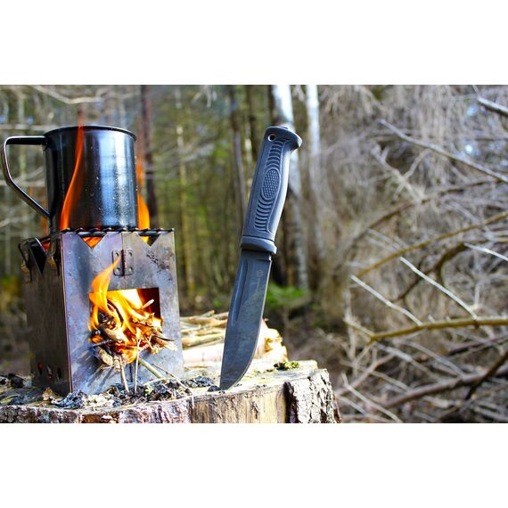 Для тех, кто увлечен рыбалкой и охотой мы подготовили еще одну приятную новинку - нож Речной. В этом ноже мы объединили все лучшее, что уже было выпущено в «речной серии». Основная особенность этого ножа - толстый и широкий клинок с фальшлезвием и высокими спусками. Нож Речной несомненно понравится любителям универсальных ножей, которые рассчитаны на решение различных задач. С помощью такого ножа легко можно очистить и разделать рыбу, освежевать небольшого зверя, разделать тушку птицы. Нож не спасует перед необходимостью расчистить просеку в кустарнике или поможет продраться сквозь заросли камыша. Нож Речной станет отличным помощником в лагере или на коротком привале.Нож выполнен из стали AUS-8, клинок и хвостовик составляют одно целое. Такая конструкция обеспечивает высокую прочность на излом и скручивание. Хвостовик выходит из рукояти и образует выступ, который можно использовать как стеклобой или для использования в качестве ударного инструмента. Удобная рукоять из эластрона позволяет уверенно удерживать нож мокрой рукой. Рукоять оснащена отверстием под темляк. Нож укомплектован ножнами северного типа из натуральной кожи. Фиксация ножа обеспечивается за счет глубокого расположения в ножнах. Ножны имеют две петли, за счет чего обеспечивается два типа подвеса: свободный и фиксированный.
