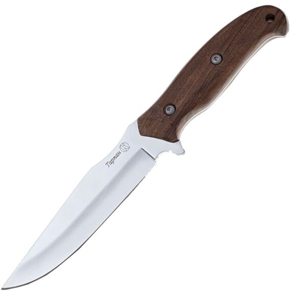 Нож «Тарпан» -это универсальный инструмент для несложных походов, рыбалки или пикника. Когда берешь его в руки, сразу вспоминаешь, что нож должен резать. Тонкий обух и прямые спуски обеспечивают деликатный рез по мягким и вязким продуктам. При приготовлении пищи создается ощущение, что нож работает сам по себе. Нож без проблем справляется с рыбой, мясом и свежими овощами. Благодаря эргономичной рукояти нож удобно держать и перехватывать в процессе работы. Подпальцевый упор защищает руку от соскальзывания на режущую кромку.