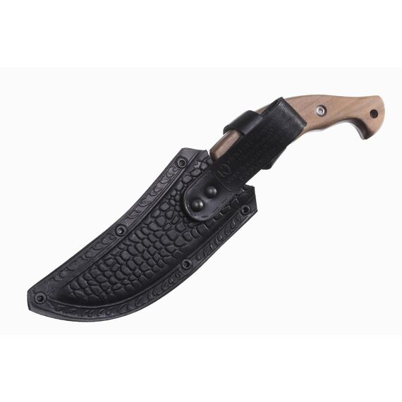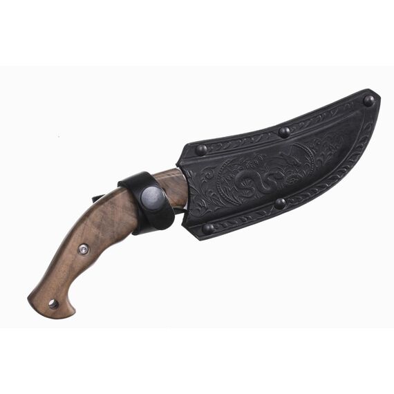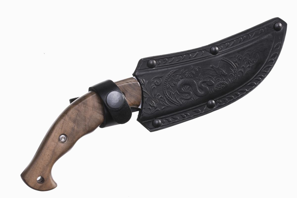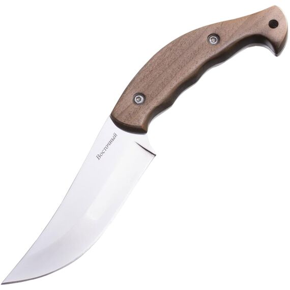 Нож Восточный. Удобно сконструированная рукоять с анатомическими изгибами и подпальцевыми выемками обеспечивает приятный и надежный хват. Острый кончик клинка отлично проникает в большинство материалов, а классическая форма клинка дает точный контролируемый рез. Нож поставляется в поясных кожаных ножнах.