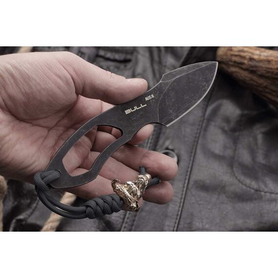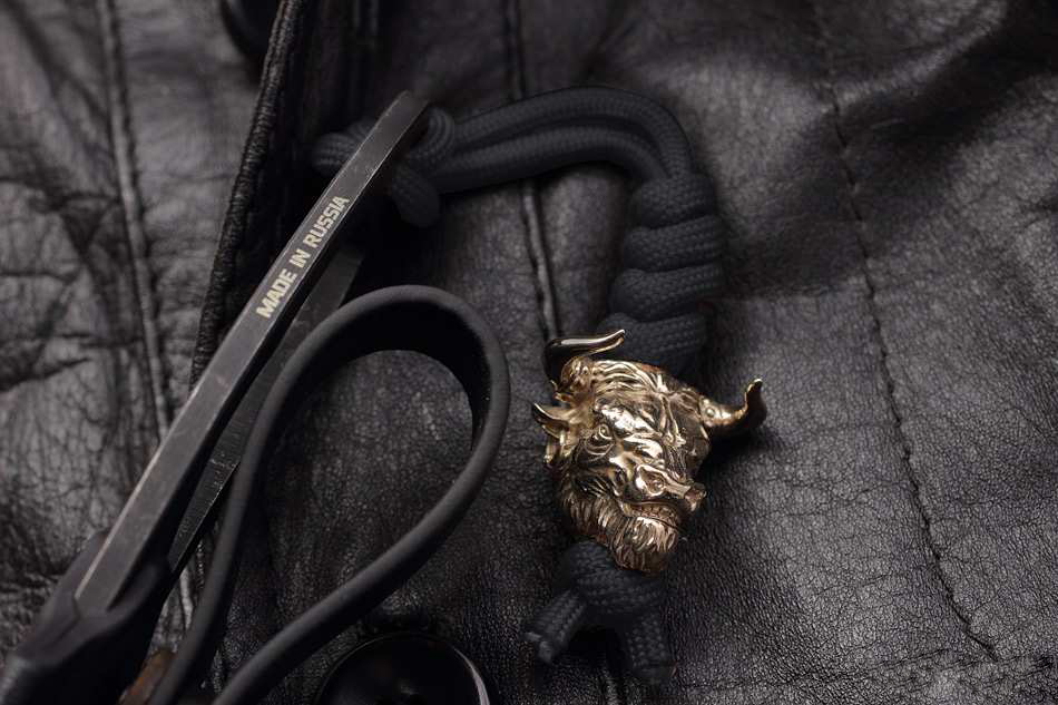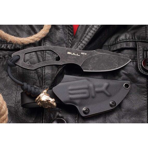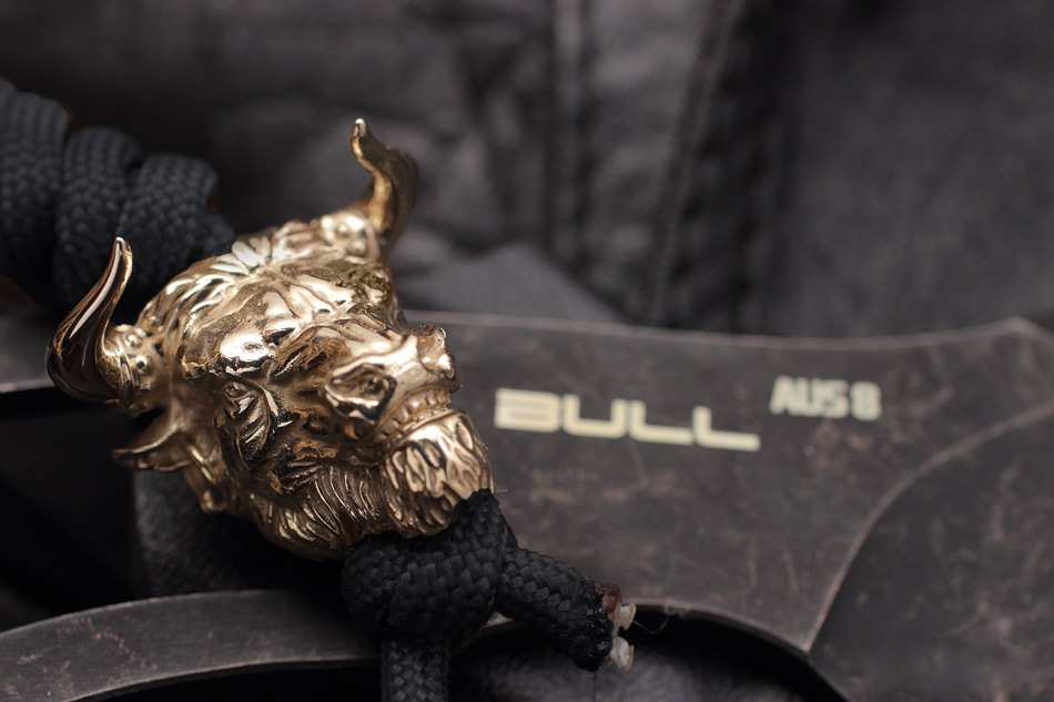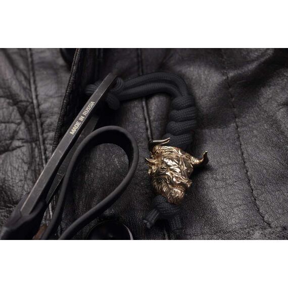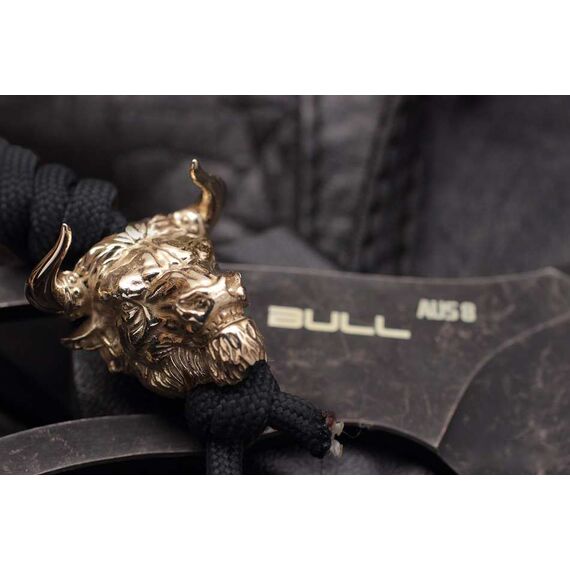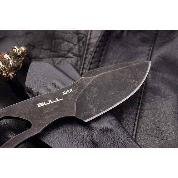 Нож скелетного типа с гравировкой быка, латунной бусиной, темляком и ножнами из кайдекса. Рабочая японская сталь AUS 8 долго держит заточку и обладает хорошей коррозионной стойкостью. Покрытие Black Stonewashed. Рукоять эргономична благодаря двум подпальцевым выемкам, обеспечивает уверенный хват в перчатке и без. Ножны из ударопрочного кайдекса обеспечивают надежную фиксацию ножа на поясе (или в качестве шейного варианта) и быстрое извлечение. Нож будет интересен и полезен в городе и для несложных походов, как вспомогательный. А если вы любитель вещей со смыслом, то символ быка на ноже принесет вам удачу!