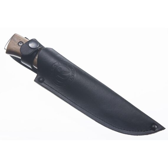 Нож Стерх-1 получил свое название из-за вида белых журавлей, гнездящихся на севере России. Вся серия ножей Стерх вобрала в себя благородство и плавность этой птицы. Клинок ножа Кизляр Стерх-1 прямой, с небольшим выпуклым скосом обуха. Такая форма клинка весьма универсальна и подходит для большинства работ на охоте, рыбалке или в походе. Спуски клинка идут от обуха. Такая форма заточки и тонкая режущая кромка обеспечивают клинку отличные режущие свойства. Рукоять ножа Кизляр Стерх-1 удобна для удержания разными хватами. Изготавливается из древесины кавказского ореха с предварительной пропиткой компаундом для придания дереву водоотталкивающих свойств. На конце рукояти имеется расширение, которое служит для более уверенного хвата и отверстие для темляка.
