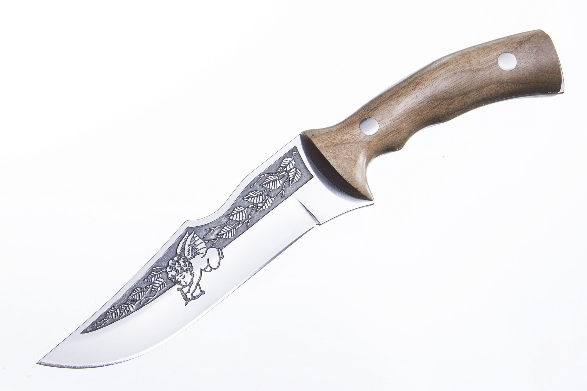 Необычный дизайн ножа “Зодиак”, произведенного российской фирмой Кизляр, делает его прекрасно подходящим на роль подарка для хорошего знакомого, друга или родственника, который оценит его высокое качество и неповторимый стиль. Он также станет достойным экземпляром в коллекции даже самого искушенного ножемана. Художественно оформленный клинок с изящным рисунком, изображающим ангела, сохранит свою красоту надолго, а рисунок не сотрется от контакта с продуктами питания и другими материалами. Высокое качество ножа “Зодиак” обусловлено отличными материалами, используемыми в его производстве. Его клинок сделан из стали AUS-8, которая давно зарекомендовала себя, как один из самых прочных и коррозионностойких материалов. Для производства рукояти и ножен использовались исключительно натуральные материалы: рукоять выполнена из кавказского ореха, а ножны - полностью из кожи.