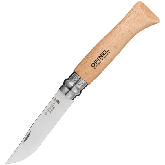Нож Opinel №8 является ярким примером совмещения классического дизайна и новых технологий производства. Клинок ножа Opinel №8 изготовлен из нержавеющей стали марки Sandvic 12С2 и прошел специальную термическую обработку, которая обеспечивает твердость материала на уровне 57-58 HRC.