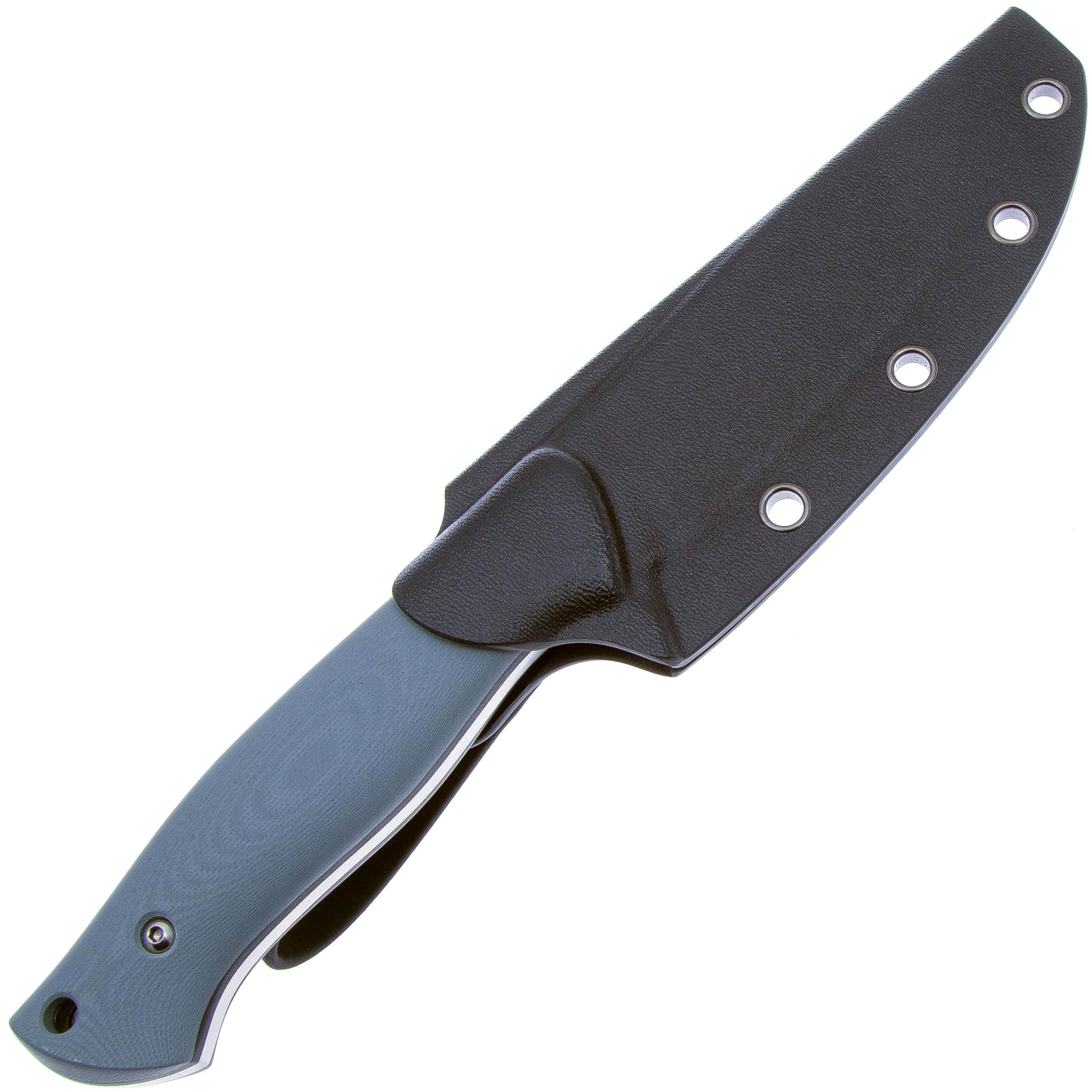 Рукоять изготовлена из стеклотекстолита G10. Стеклотекстолит G10 — это композитный материал на основе стеклоткани и эпоксидной смолы. Он является очень прочным, влагонепроницаемым и ударостойким. Прекрасно поддается обработке и окрашиванию. Используется повсеместно на всех современных ножах.