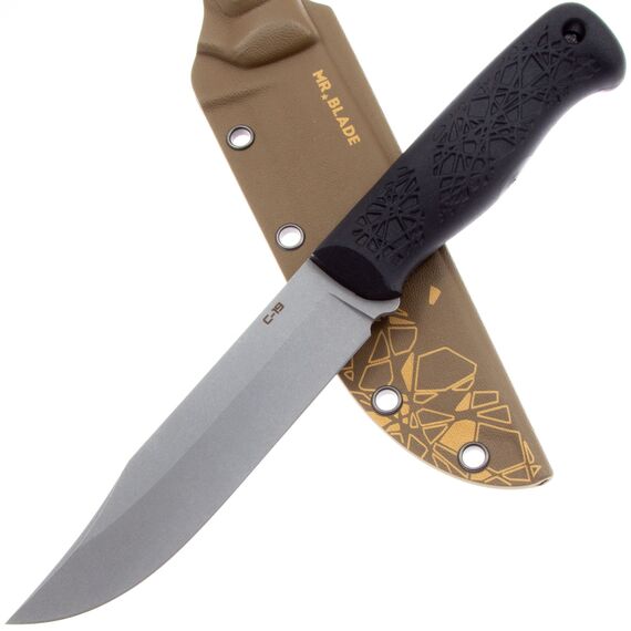 Mr.Blade C-19 - удобный и функциональный туристический нож с яркими ножнами в комплекте. Нож обладает слегка вогнутыми спусками, что обеспечивает уверенный рез, а щучья форма клинка даёт прекрасную проникающую способность. Удобная рукоять выполнена из эластрона, за счёт рельефного рисунка обеспечивает прекрасное сцепление во время работы.