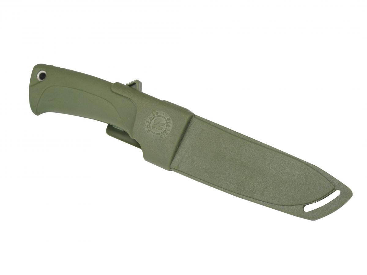 Рукоять выполнена из эластрона — это доступный и очень прочный материал. Устойчив к химическим веществам, не боится истирания, хорошо себя чувствует, как при низких, так и при повышенных температурах.