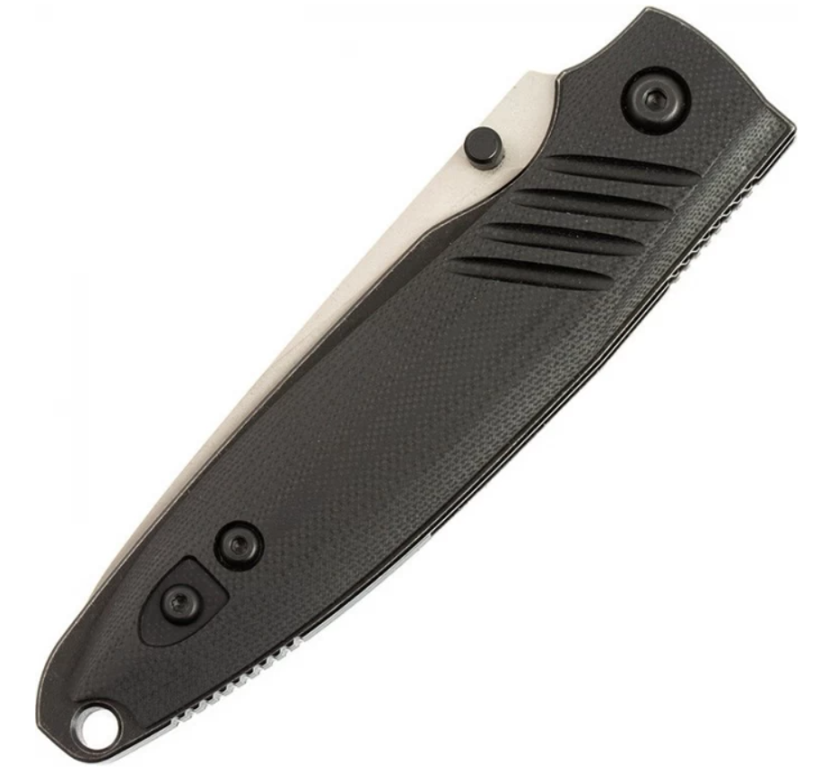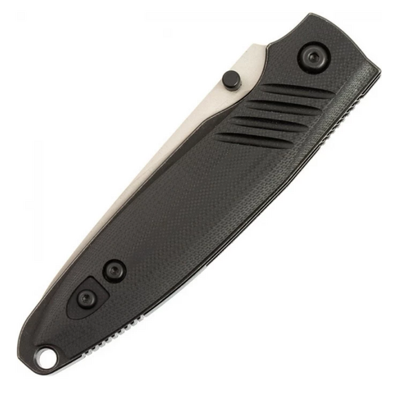 По мнению многих производителей это лучшая по совокупности свойств ножевая сталь. Изредка её называют "полу-нержавеющей" одержит около 12% хрома, что недостаточно, чтобы назвать D2 полноценной коррозионностойкой сталью. Рукоять выполнена из G10 износостойкого материала уже ставшего настоящей легендой. Он не боится ни влаги, ни выцветания. Так же он обладает неплохой стойкостью к ударам и истиранию. Текстура материала очень грубая, и из руки нож не выскочит.