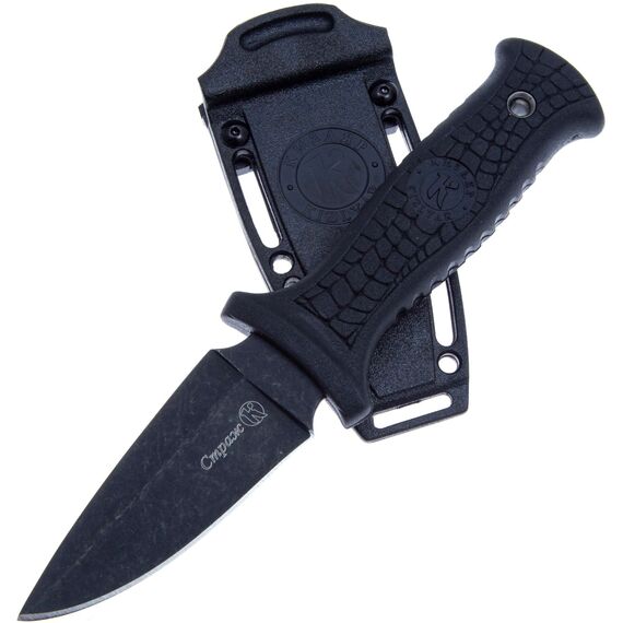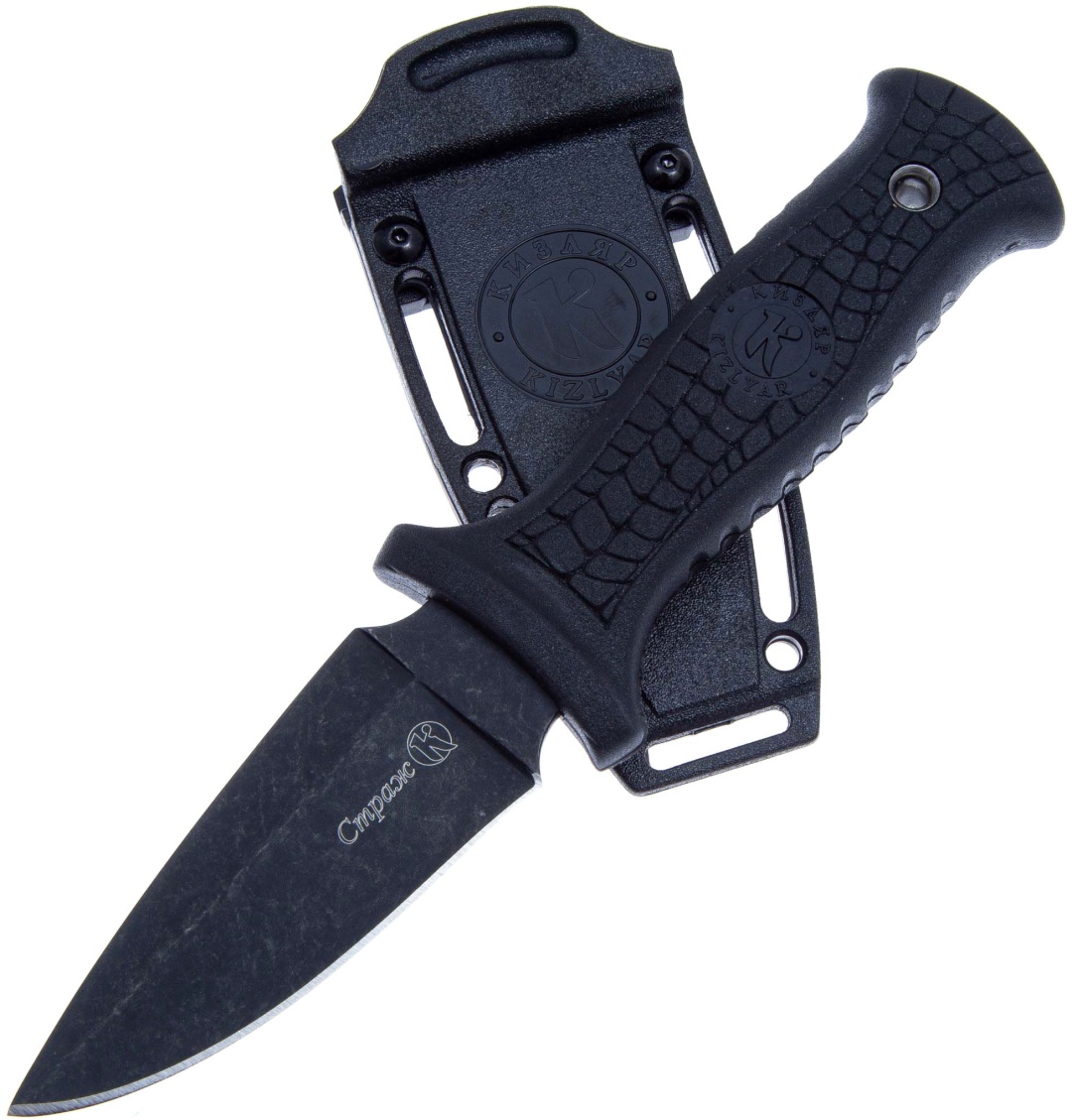 Городской тактический нож «Страж» - первый подобный нож от ООО ПП «Кизляр», выпускающийся с двумя типами ножен – классическими кожаными поясными и из прочного полимерного материала, позволяющего использовать в том числе и для дайвинга, с несколькими вариантами подвесов. Также Страж доступен к приобретению с полированным клинком или с темным клинком, обработанным антибликом технологии stonewash.