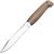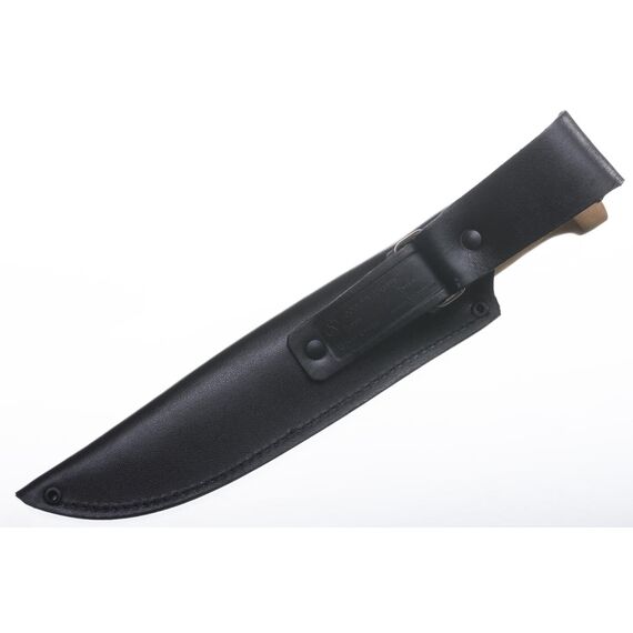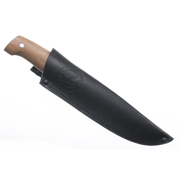 Форма рукояти, материалы, использованные при ее изготовлении, позволяют надежно удерживать нож при любом хвате и при выполнении любой работы, в то же время небольшой односторонний ограничитель рукояти не ограничивает возможности хозяйственного применения ножа. Ножны погружного типа изготовлены из жесткой качественной кожи. По конструкции они схожи с ножнами «Финского», но имеют дополнительный ремешок, фиксирующий рукоять у навершия. Такая конструкция дает возможность носить нож рукоятью вниз без риска его потерять.