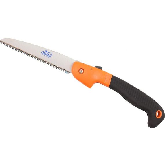 Необходимый инструмент для любого туриста. Отлично подходит для распила сучьев и небольших брёвен. Лезвие в отркытом положении фиксируется специальным замком, а в сложенном плотно удерживается в ручке. Трехгранная заточка и дополнительная закалка зубьев позволяет быстро распиливать древесину, а высококачественная сталь исключает затупление. Рукоятка пилы прорезиненная, что предотвращаяет скольжение изделия. Удобная форма пилы позволяет держать её под оптимальным углом без дополнительного напряжения кисти.