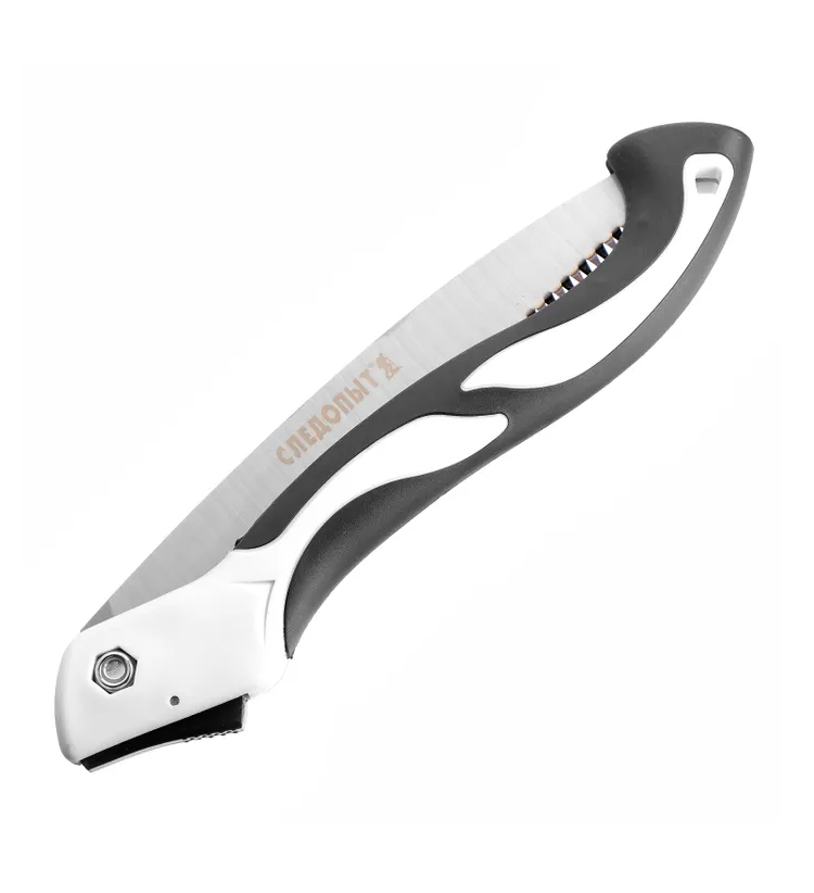 Складная пила "СЛЕДОПЫТ-SCOUT" - необходимый инструмент для туристов. Подходит для распила сучьев и небольших бревен.