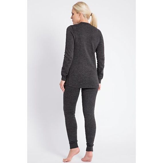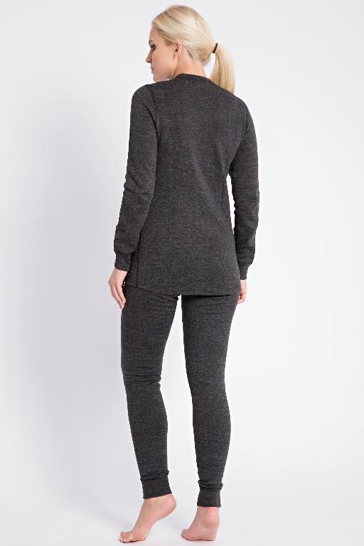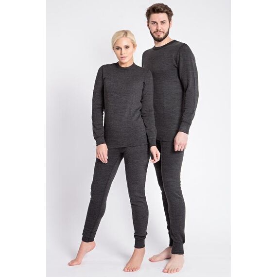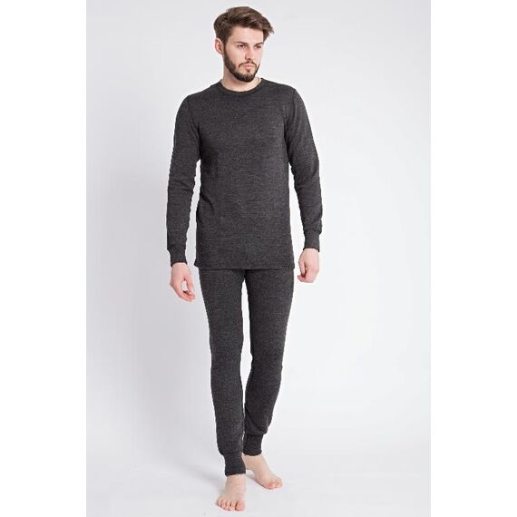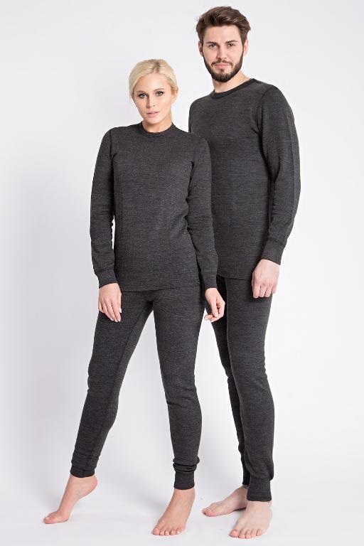 Термобелье выполнено из технологичного трехслойного материала плотностью 230г/м²: внутренний слой из мягкого полиэстера с обработкой начесом, средний слой из полиэстера для дополнительного удержания тепла, внешний слой из объемного теплосберегающего плетения с добавлением натуральной шерсти, вискозы и акрила.