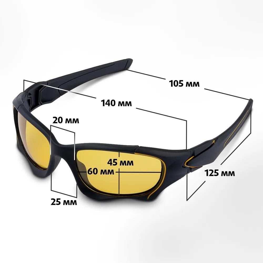 Желтые линзы очков эффективны в пасмурные дни и в сумерках, а так же это идеальный для рыболова вариант при ловле в неглубоких речках и ручьях, сильно заросших прибрежной растительностью где, как правило, мало света. Желтый цвет увеличивает контрастность, отсеивает голубую часть видимой части спектра за счет чего осветляет окружающие предметы, усиливая остроту зрения.