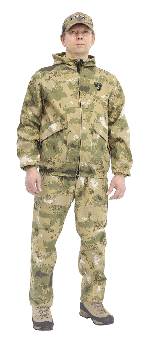 Модель на резинке. Куртка 2 накладных кармана с клапанами. Без москитной сетки. Регулировка по капюшону. Регулировка низа брюк. Брюки пояс на резинке. Рукава на резинке. Шлевки для ремня. Брюки 2 накладных кармана.