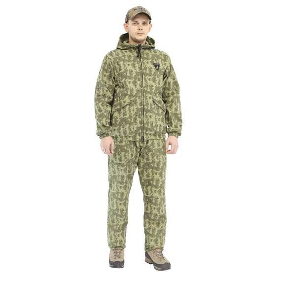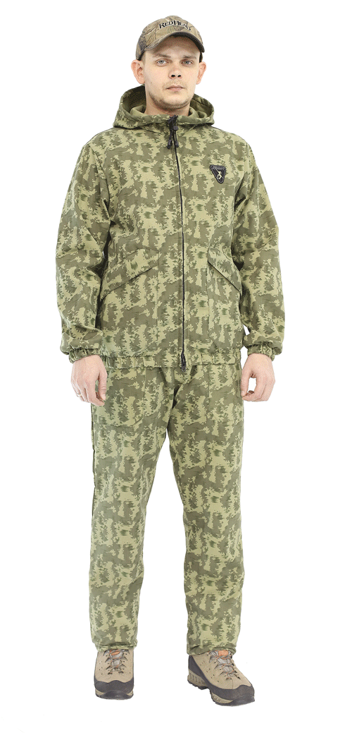Модель на резинке. Куртка 2 накладных кармана с клапанами. Без москитной сетки. Регулировка по капюшону. Регулировка низа брюк. Брюки пояс на резинке. Рукава на резинке. Шлевки для ремня. Брюки 2 накладных кармана.