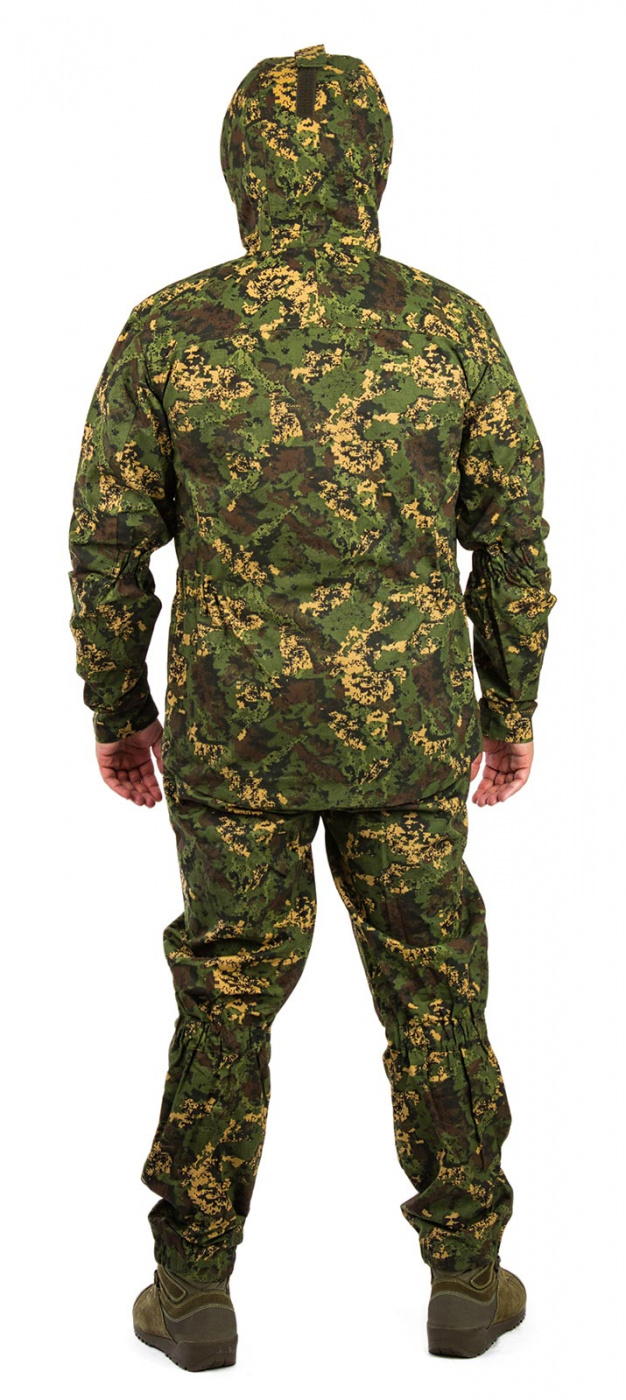 Летний охотничий костюм «Шерхан» по достоинству оценят охотники, любители активного отдыха и туристы. Особенность костюма – дышащий материал из 100% хлопка плотностью 240 г/м2. Камуфляжная расцветка позволяет охотнику оставаться незамеченным для своей добычи. Бесшумность ткани также дает ему возможность скрытно передвигаться по местности.