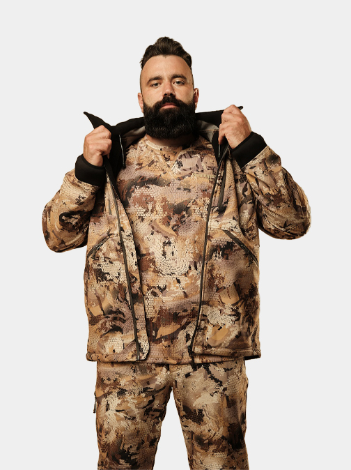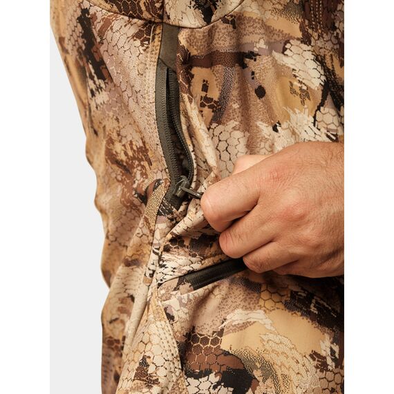 Костюм Remington Himalayan Yellow Waterfowl Honeycombs выполнен из мембраны Climatic Pro с характеристиками: Паропроницаемость 12 000 г/м²/24 ч, Водонепроницаемость 10 000 мм. Верхний слой ткани защищает от ветра, подкладка из микрофлиса улучшает терморегуляцию. В костюме предусмотрены молнии в области подмышек для вентиляции. Регулировки объема обеспечивают хорошую посадку и защиту от холодного воздуха. Воротник стойка с капюшоном защищает от непогоды и сохраняет тепло. Карманы различного объема для личных вещей.