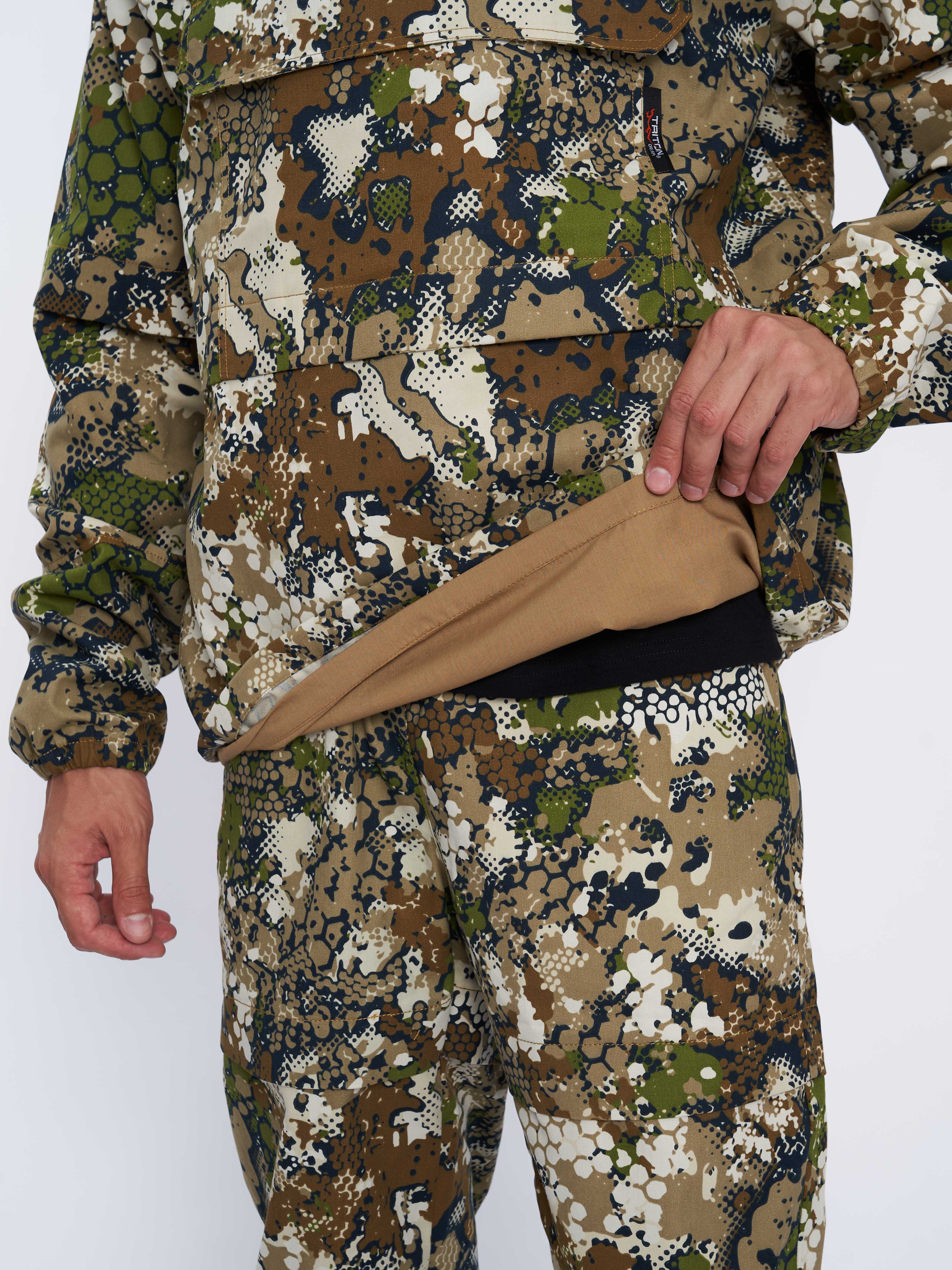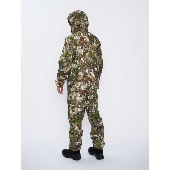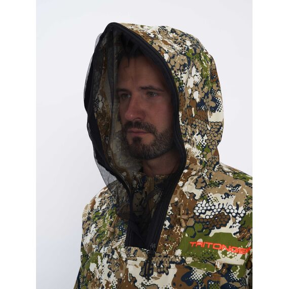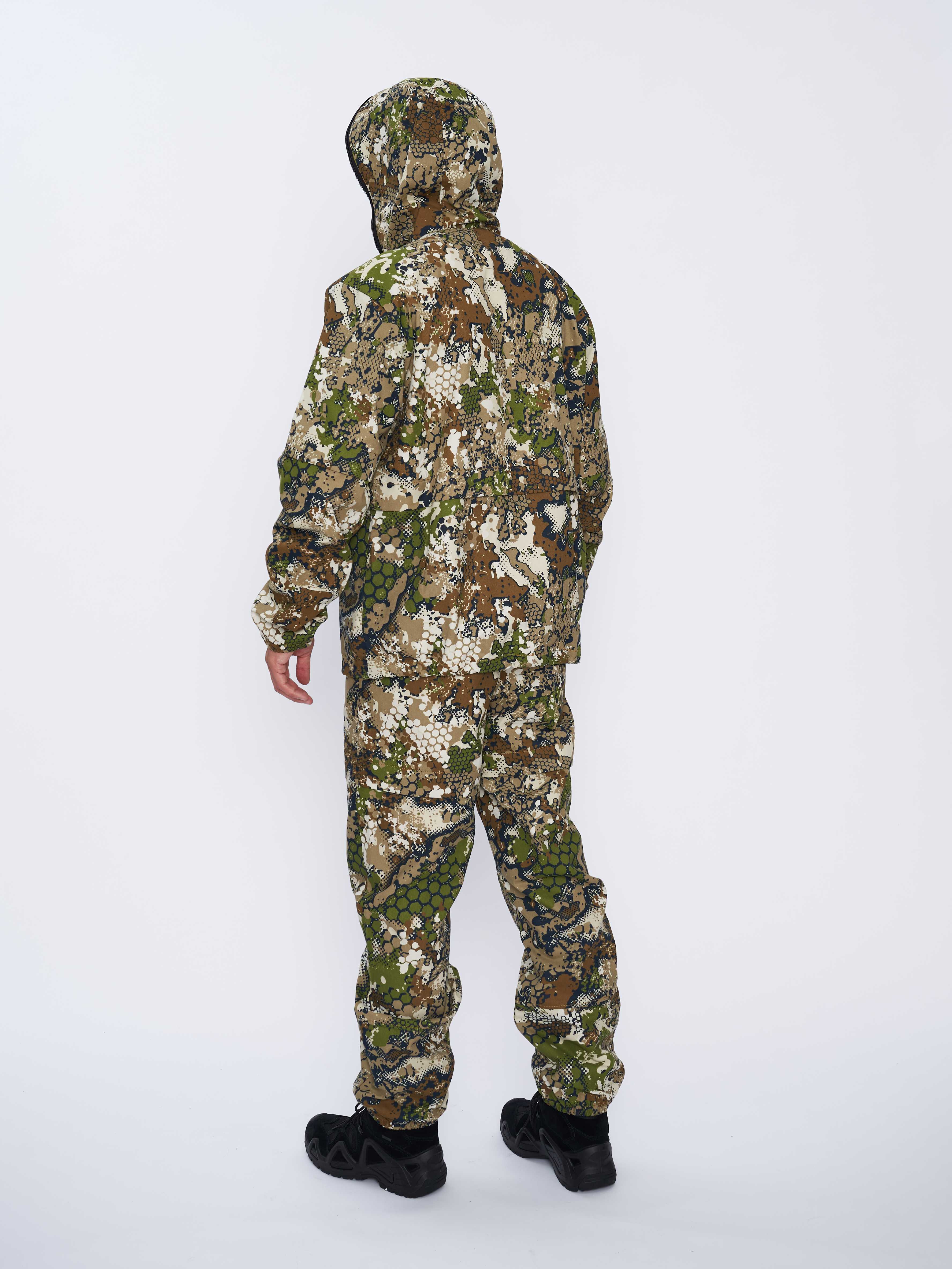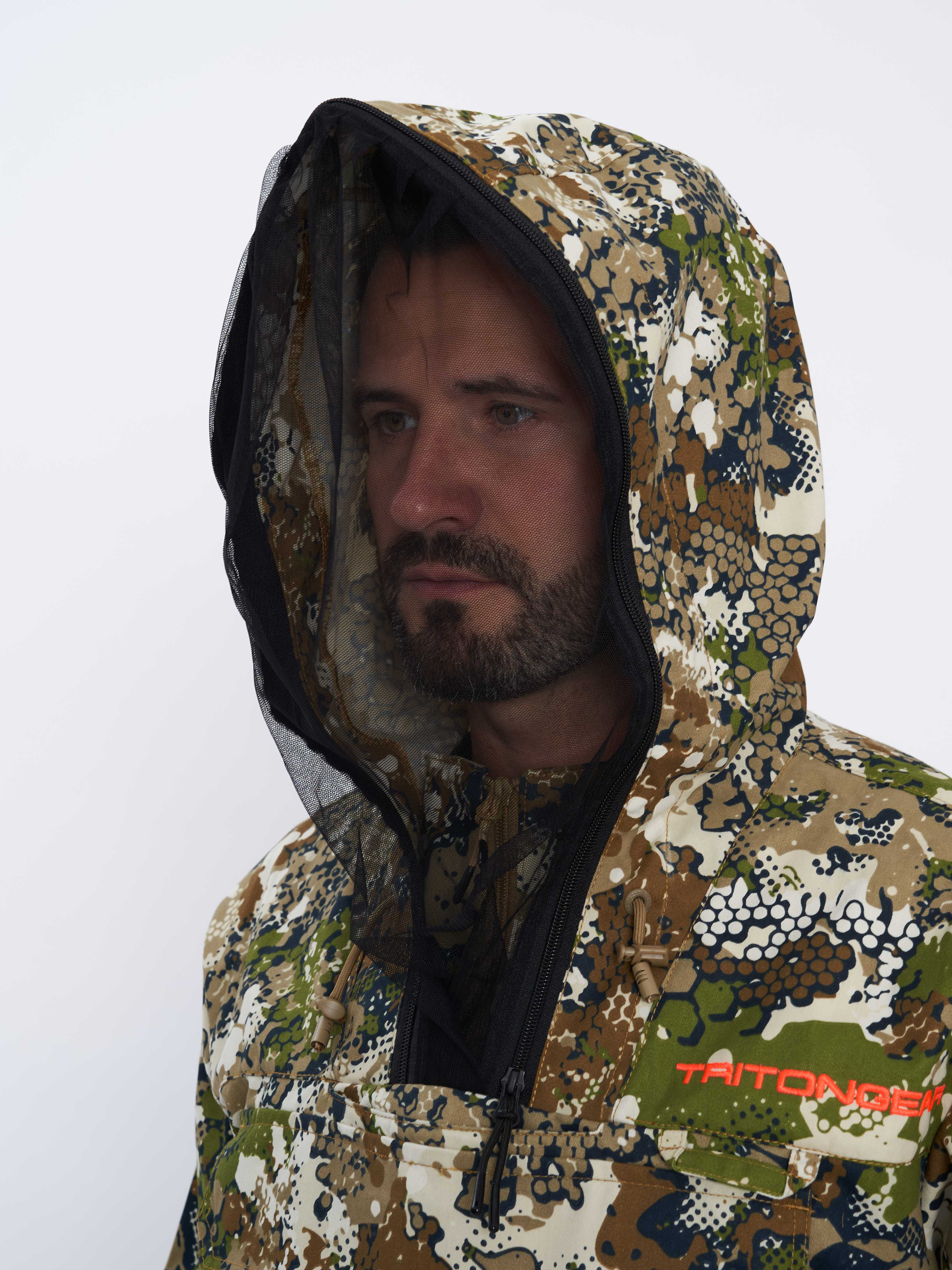 Костюм снабжен регулируемым по объёму капюшоном с фиксаторами и съёмной антимоскитной сеткой с мелкоячеистой структурой, которая прекрасно пропускает свет и не мешает обзору, хорошо защищает от мошек, комаров, гнуса и клещей.