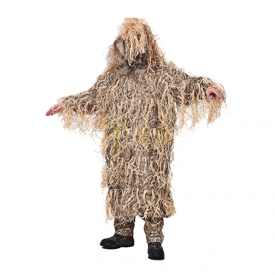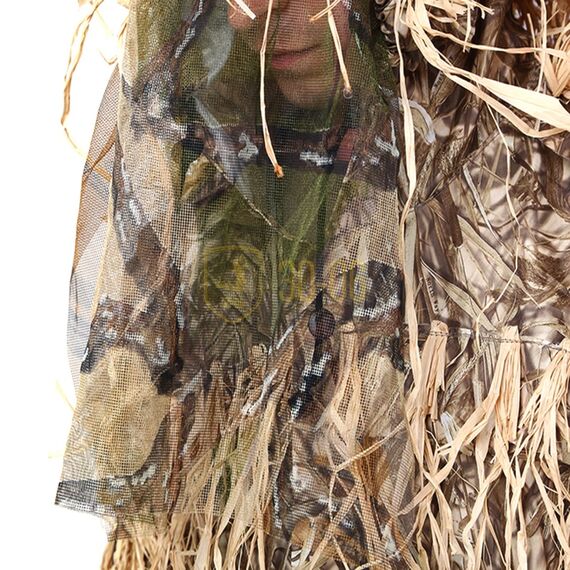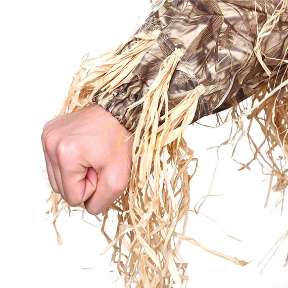Основа костюма выполнена из камуфлированного материала Оксфорд 220den (полиэстер - прочный и влагостойкий материал, не вызывающий аллергических реакций), в расцветке NW-1 (специально разработанный для утиной и гусиной охоты в России), что делает его прочным и водостойким. Отличные маскировочные свойства костюму придают узкие листья уникального растения РАФИЯ. Это листья пальмы с острова Мадагаскар, которые обладают долговечностью, износостойкостью и высокой прочностью. Костюм не впитывает влагу и не издает запах, как лыко и солома. Не подвержен активному гниению после намокания, в отличии от простой высушенной травы и лыка. В разы устойчивее к физическим деформациям. При попадании влаги, не вызывает бликов на солнце. Не занимает много места, складывается в удобную фирменную сумку с ручками для комфортной переноски.