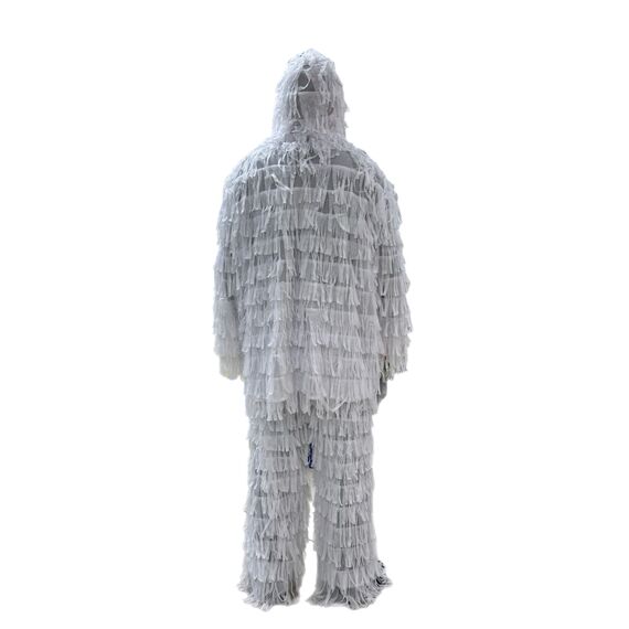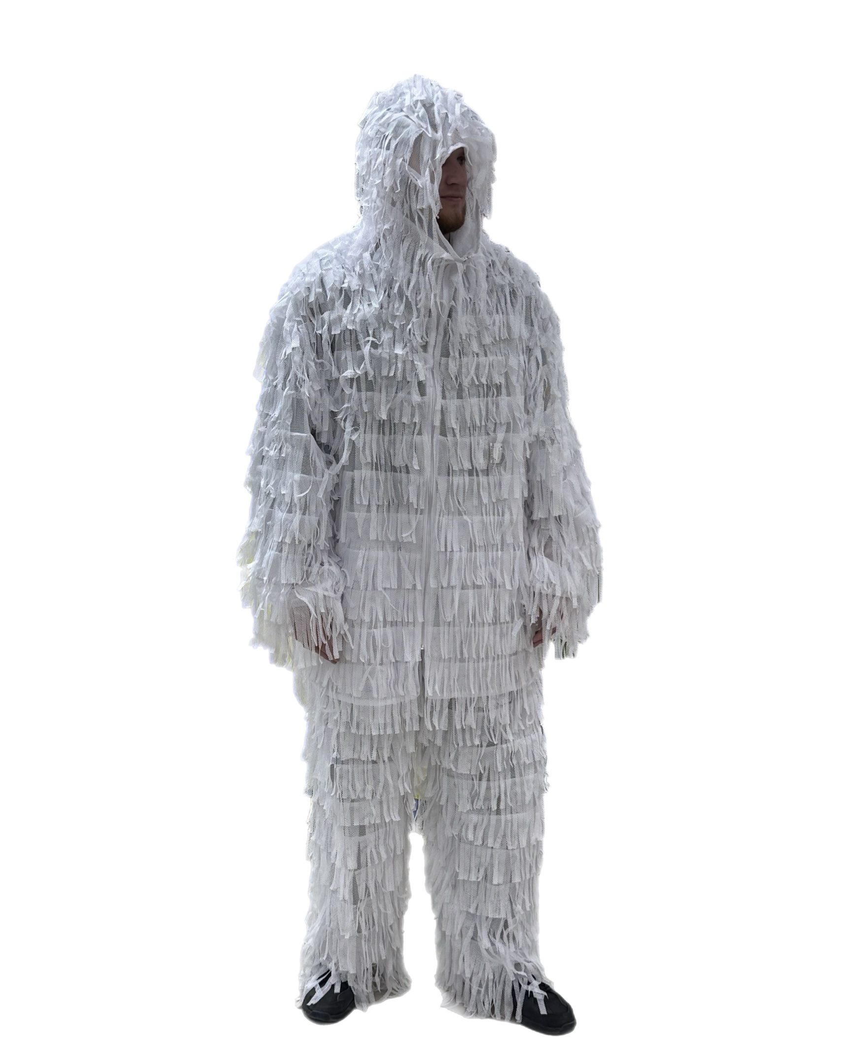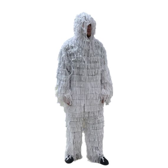 Маскировочный комплект ЛЕШИЙ легкий, выполнен из прочной мелкой сетчатой ткани (полиэстер) с большим количеством нашитой по всей поверхности синтетической нити (полиэстер). Невидимка состоит из куртки, штанов, балаклавы, обмотки на ружье и чехла для переноса. Костюм не вызывает аллергических реакций, надевается поверх основной одежды, не имеет запахов, не мокнет, не впитывает влагу, устойчив к гниению, не рассыхается. Отлично размывает силуэт с расстояния уже в нескольких метрах. Конструкция не стесняет движений при ходьбе и беге, а материал хорошо дышит, не шуршит, не блестит и не создает бликов на солнце. Вшитые утягивающие манжеты на резинке в рукавах, талии, штанах, позволяют костюму растягиваться и делают его универсальным, что подходит для разных по комплекции людей. Для удобства ношения имеет синтетические завязки и пуговицы-кнопки. В балаклаве предусмотрено специальное окно для глаз из крупной сетки для хорошей видимости. Костюм Леший станет отличным укрытием и маскировкой для охотников, для страйкбола, пейнтбола, для праздников, декораций, а эстетичный вид станет отличным подарком.
