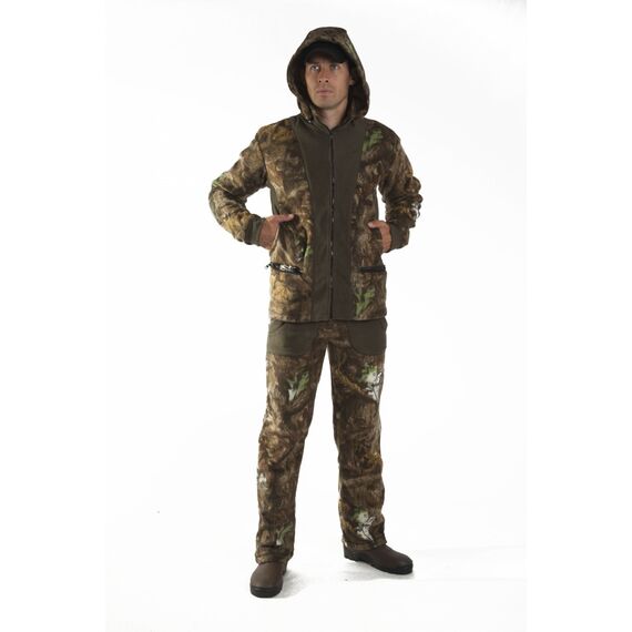 Функциональный мужской костюм. Для изготовления этого комплекта применяется двухслойная ткань поларфлис. Эта ткань обладает повышенной плотностью, хорошей ветрозащитой, практически не впитывает влагу, быстро сохнет, не вызывает аллергии. Передняя часть куртки и кокетка по спинке продублированы сеткой. Брюки свободного кроя на эластичной тесьме. Рекомендован для туристов, охотников и всех любителей активного отдыха на природе.