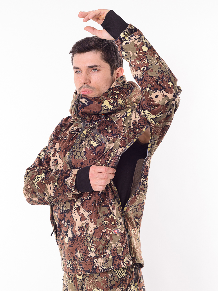 Костюм с курткой Анорак. Анорак – это модель куртки свободного силуэта без выраженной линии талии. Благодаря анатомическому крою куртка не стесняет движений и обеспечивает полную свободу. Двусторонние боковые молнии позволяют удобно надевать куртку и обеспечивают хорошую вентиляцию. Преимуществом данной модели является – объемный карман, располагающийся посередине куртки. Комфортный температурный режим +10с° - 15с°