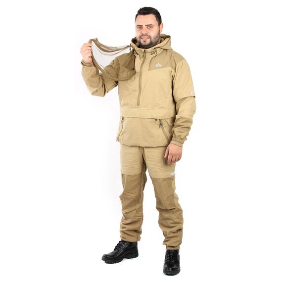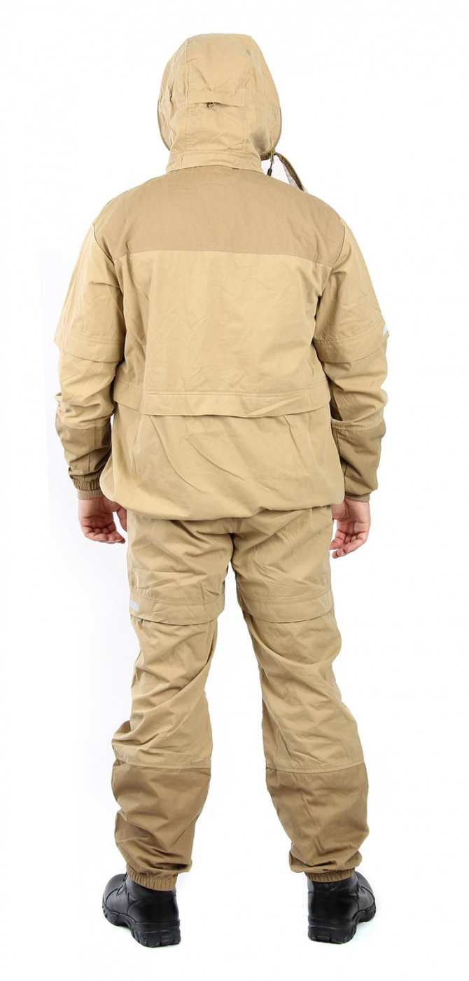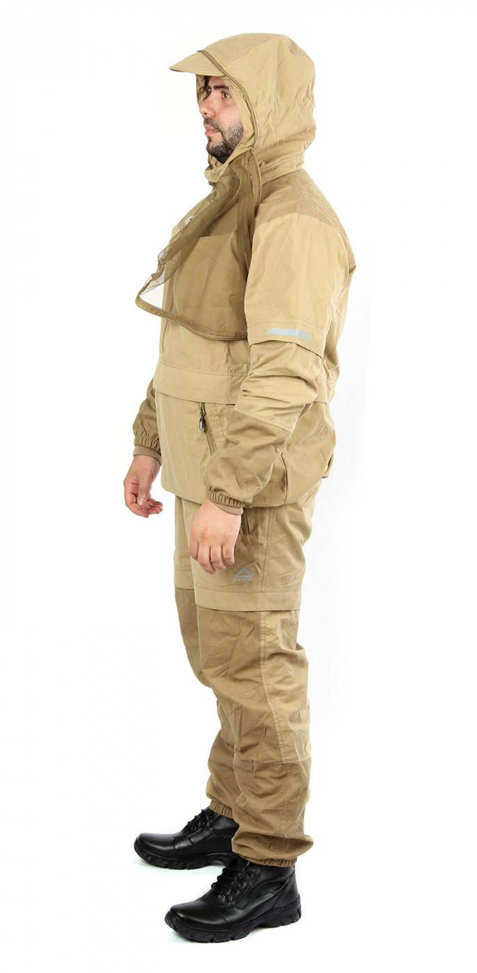 Костюм «Элит-Барьер» разработан на основе классического противоэнцефалитного костюма, который состоит из куртки типа «анорак» с капюшоном и брюк прямого кроя. Костюм оснащен специальными ловушками для клещей, внутри куртки предусмотрен дополнительный слой хлопковой трикотажной ткани, которая заправляется в брюки для максимальной защиты от проникновения внутрь изделия. Рукава оснащены плотными трикотажными манжетами. На капюшоне предусмотрена молния для противомоскитной сетки, которая компактно укладывается в карман на груди. В передней части куртки предусмотрен объемный передний влагозащитный карман и два боковых. Этот костюм отлично подойдет для всех, кто часто и долго бывает в лесу. Для обеспечения безопасности в темное время суток вся печать на изделии является светоотражающей.