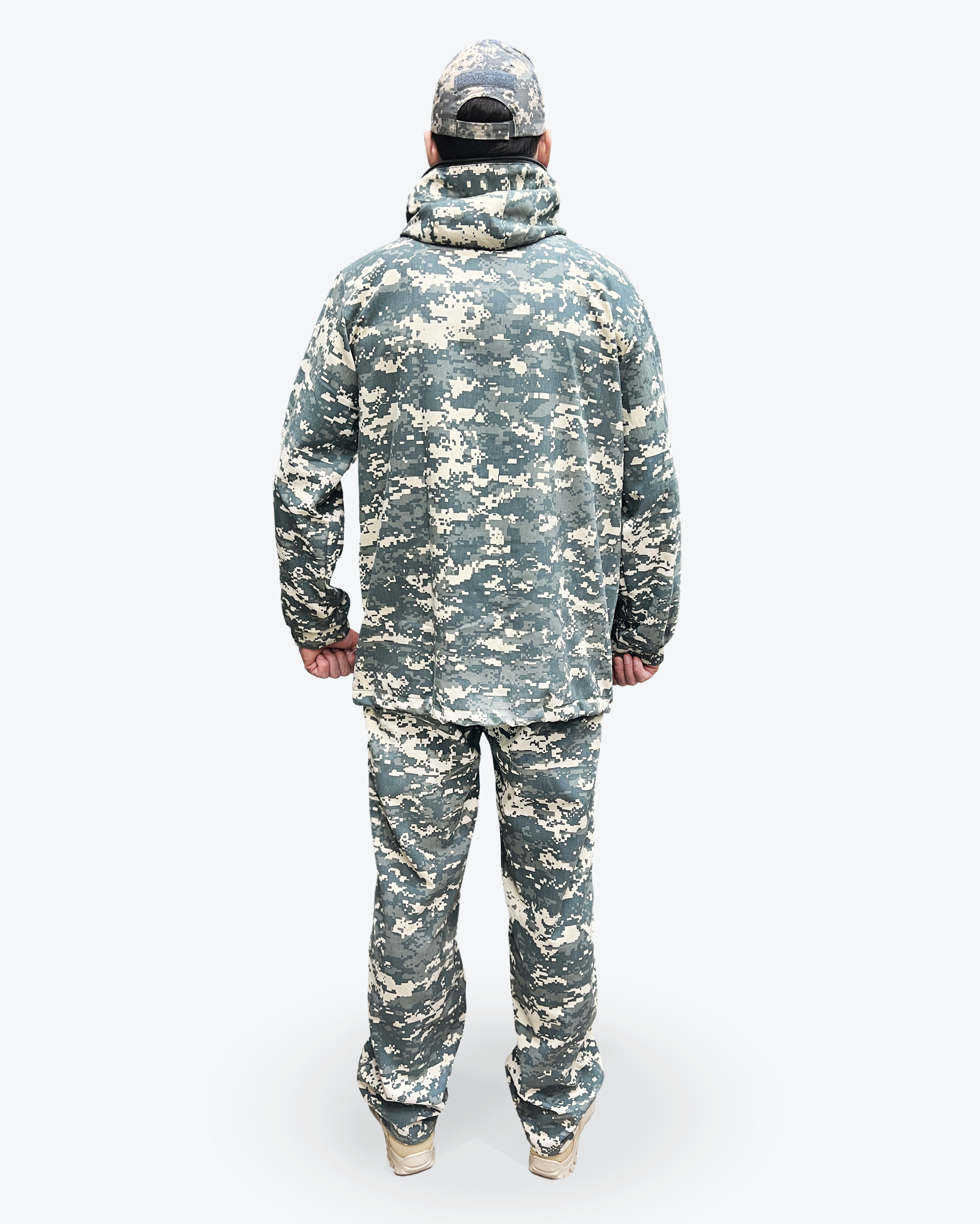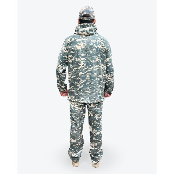 Брюки с завышенной посадкой с утяжкой пояса и шлевками для ремня, брючина прямая с противоклещевыми ловушками, по низу внутренний защитный противоклещевой клапан и утяжки.