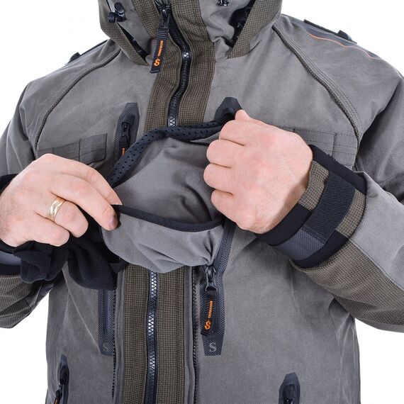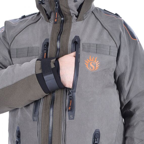 Костюм дополнительно усилен материалом KEVLAR® с мембраной.