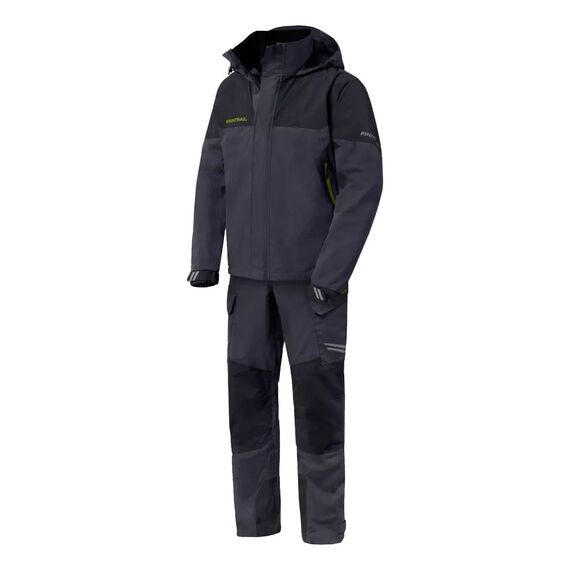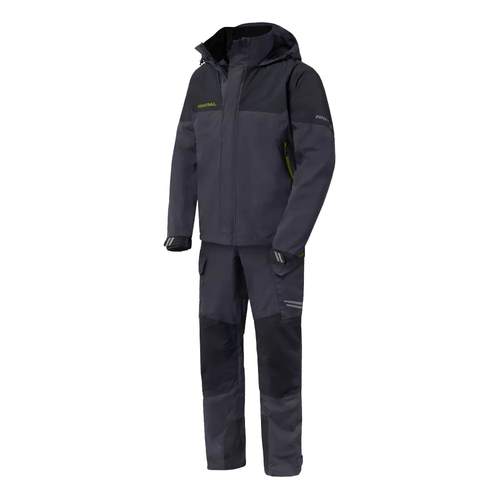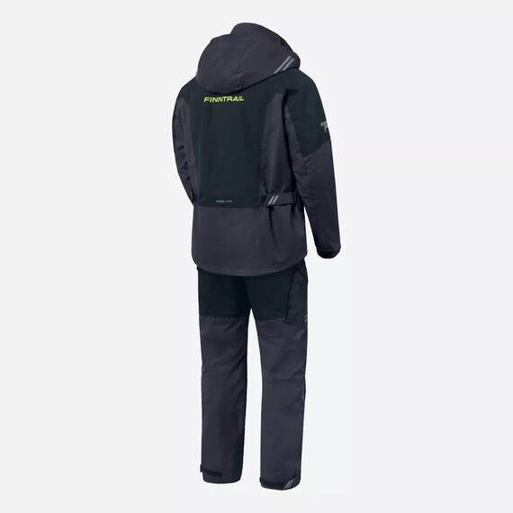 предотвращает впитывание вязкой грязи и влаги, препятствуя появлению на поверхности следов и разводов. Структура ткани позволяет сохранять комфорт в течение 24 часов под проливным дождём. Функциональный дизайн модели объединяет в себе продуманные детали, оригинальный графитовый цвет и фирменный логотип FINNTRAIL. Эргономичный крой брюк и куртки обеспечивает полную свободу движений. Регулируемый в двух плоскостях капюшон позволяет настроить максимально комфортный объём. При необходимости он легко убирается в воротник. Центральная двухзамковая тракторная молния YKK с влагозащитной планкой на липучках обеспечивает прочное соединение и защиту от ветра. Эластичная лента на манжетах и внизу брюк позволяет плотно облегать запястья и щиколотки, что помогает предотвратить проникновение холодного воздуха. Регулировка на липучках предотвращают парусность материала в области талии, что улучшает посадку и обеспечивает комфорт во время активного движения. Высокий пояс снижает давление на живот и обеспечивает более устойчивое положение брюк. На куртке расположено два внешних кармана с влагозащитными молниями YKK Aquaguard и один внутренний на молнии для гаджетов. По правую руку брюки оснащены объёмным карманом с клапаном, что позволяет обеспечить быстрый и лёгкий доступ к необходимым вещам, не отвлекаясь от езды. Комбинированная подкладка с сеткой способствует циркуляции воздуха. Страховочные кольца надёжно фиксируют чеку безопасности квадроцикла. Светоотражающие элементы обеспечивают безопасность в ночное время суток.