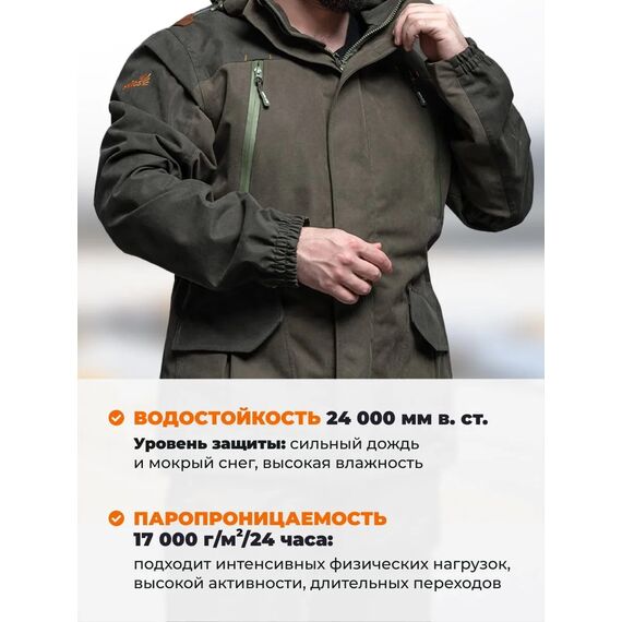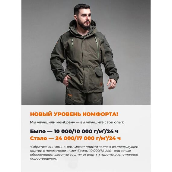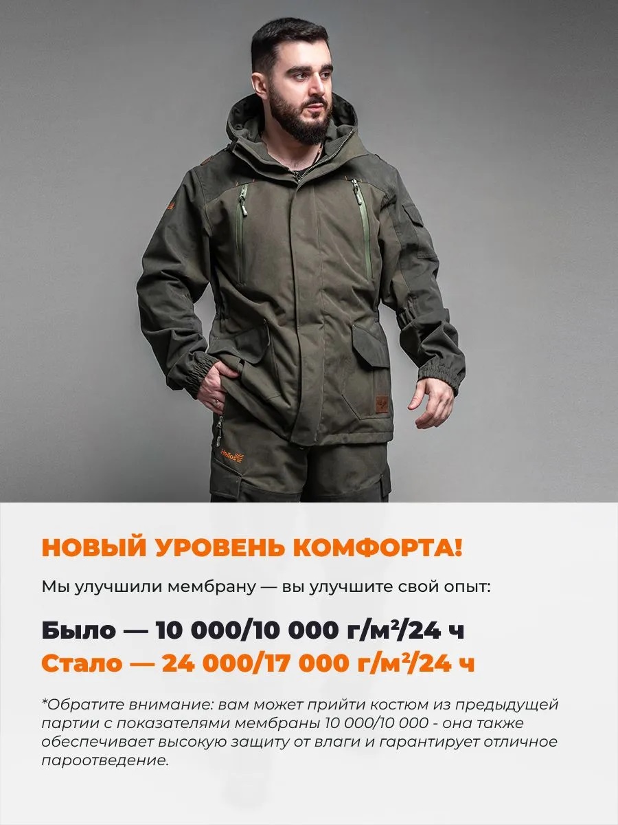 Награды: Костюм признан победителем конкурса производителей одежды и обуви в номинации "Костюм демисезонный ОХОТА" в рамках международной выставки "ОХОТА И РЫБОЛОВСТВО НА РУСИ - 2024".