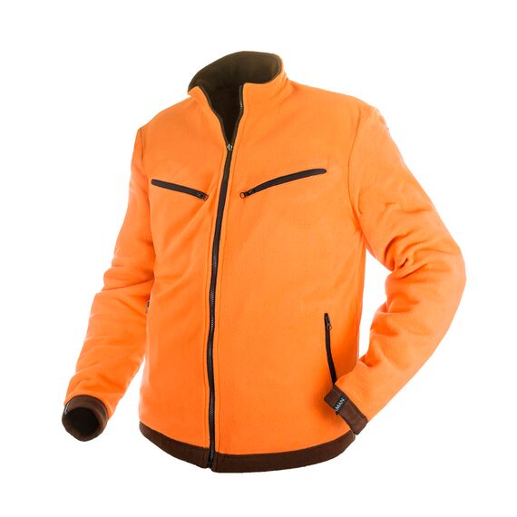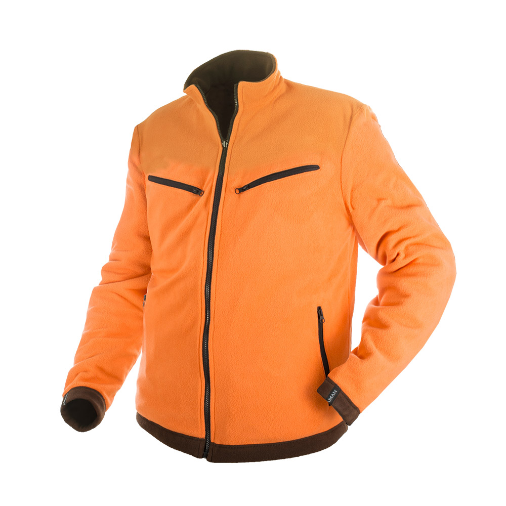 Легкая двусторонняя флисовая куртка с антипилнговым и гиппоаллергенным флисом с WR-пропиткой. Сочетает такие цвета, как классический коричневый (или хаки) и оранжевый для обеспечения безопасности.