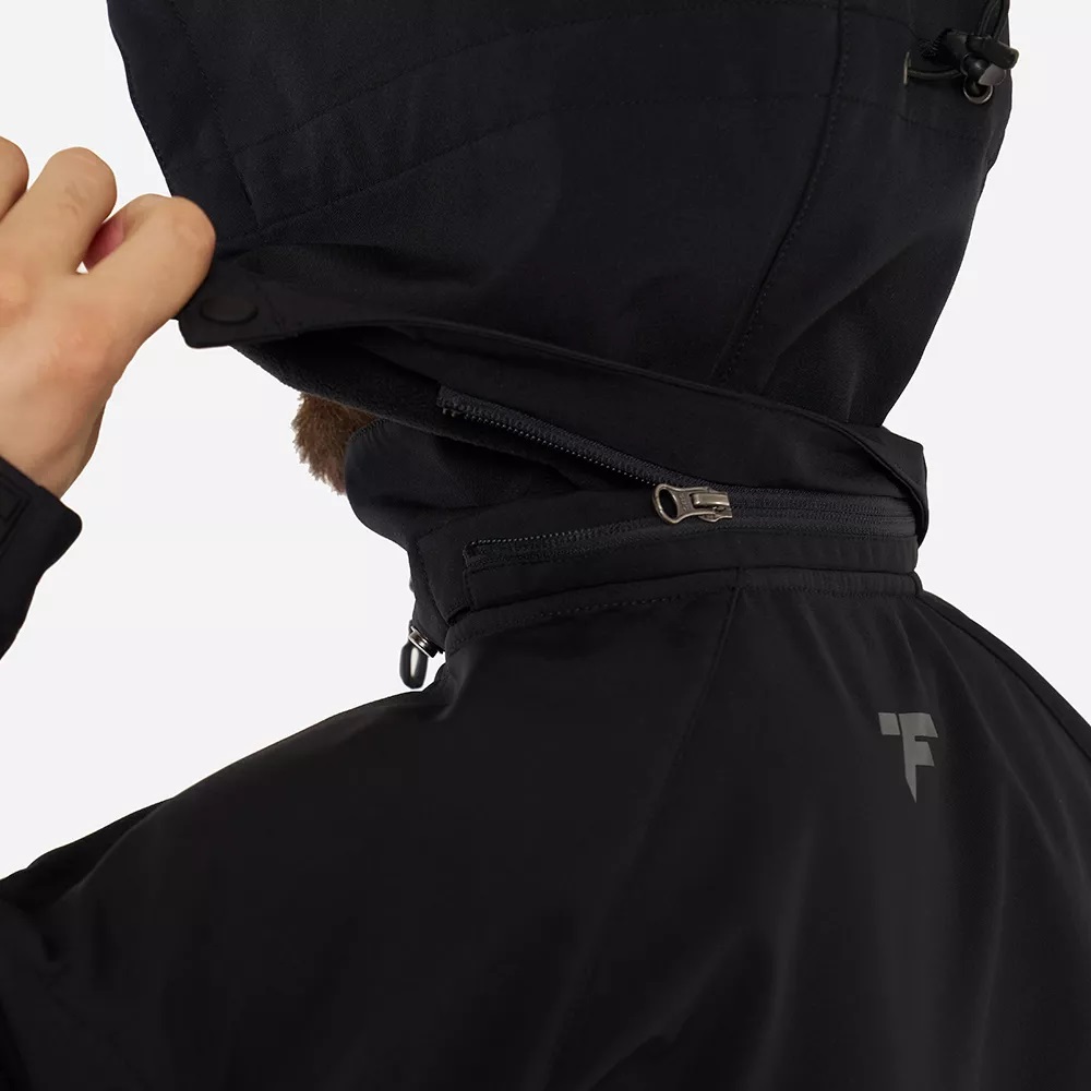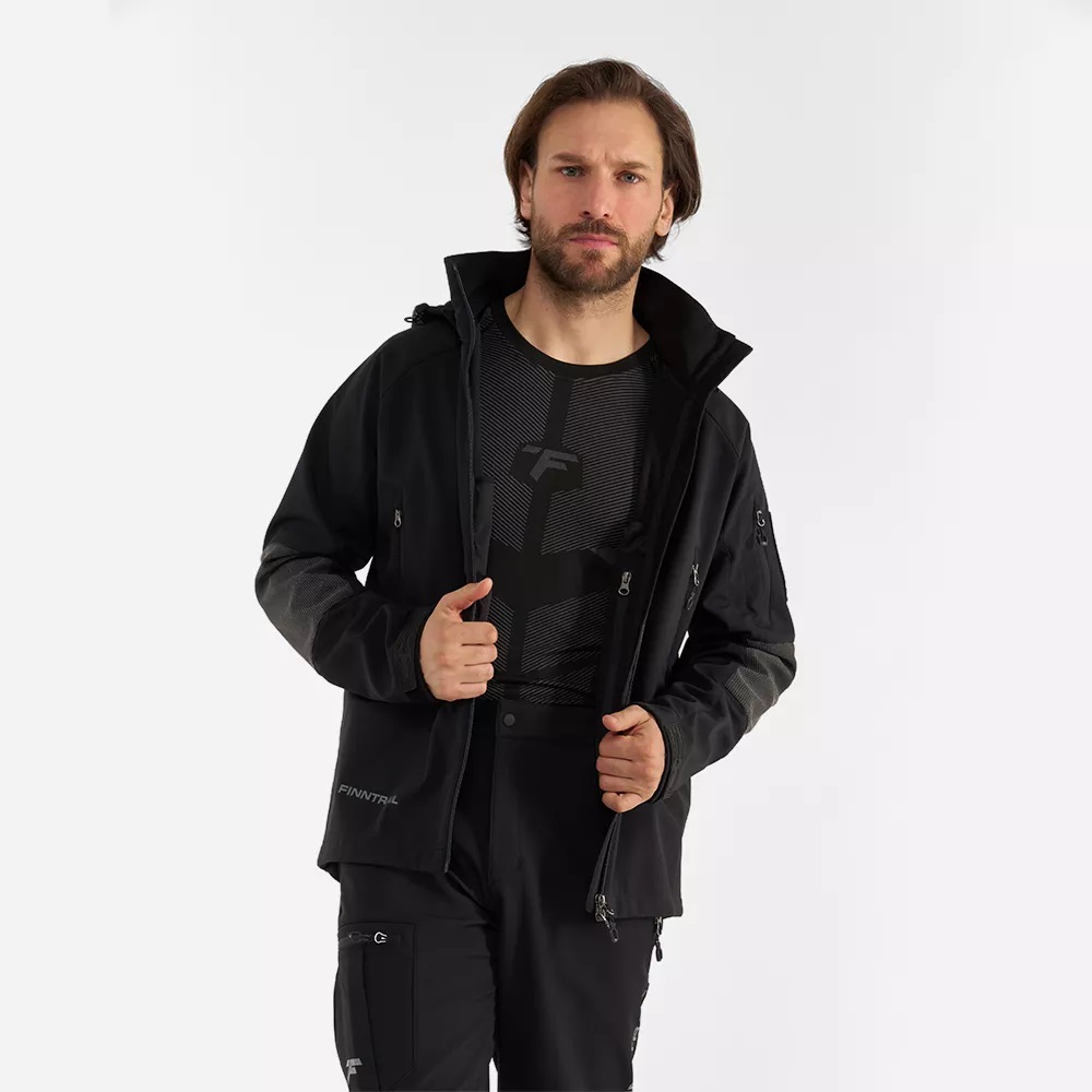 - Трёхслойный материал SoftShell с мембраной и внутренним слоем из микрофлиса сохраняет тепло, отводит излишки пара от тела, не пропускает воду и ветер внутрь.
