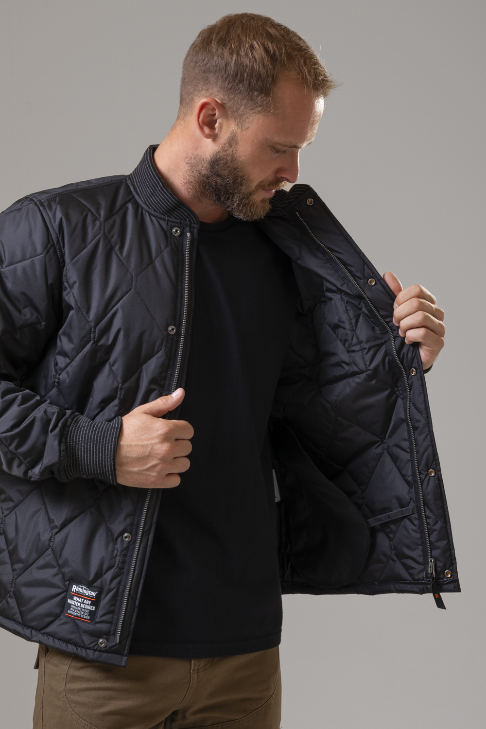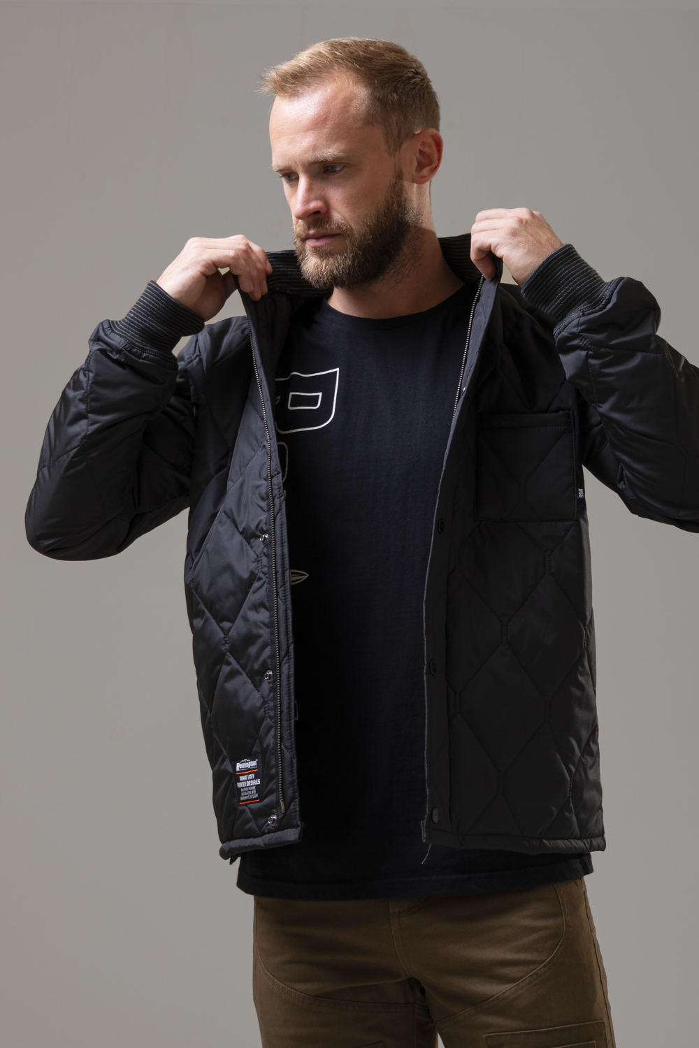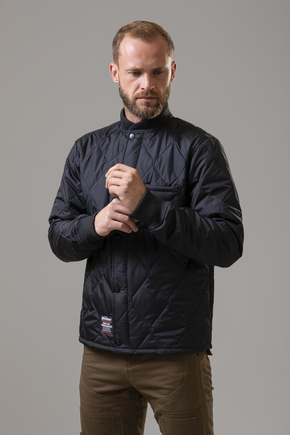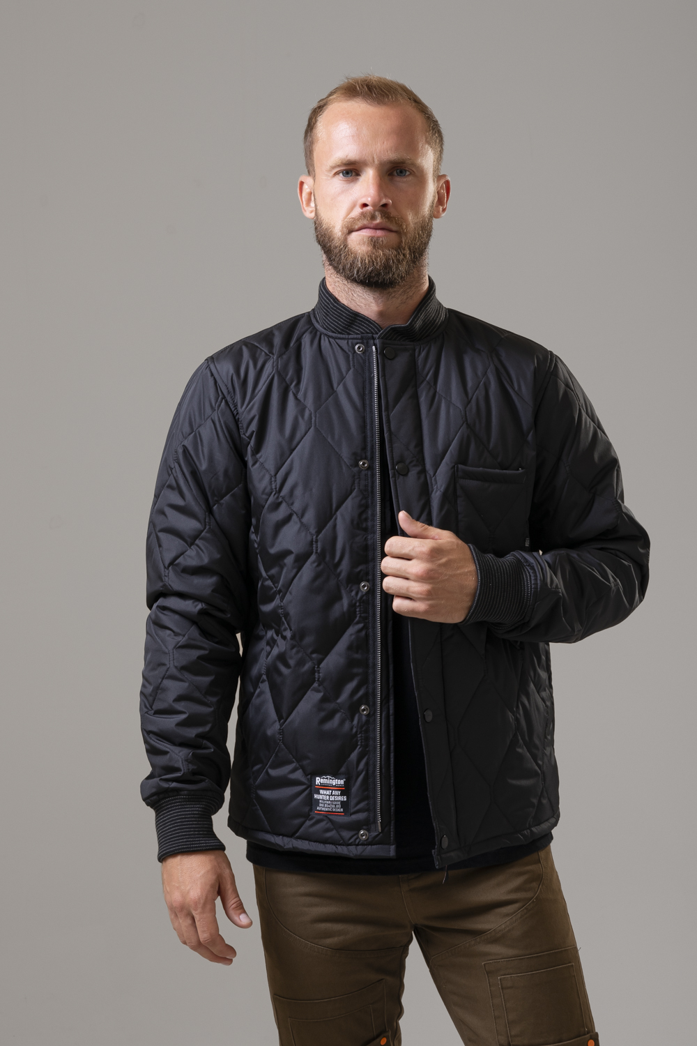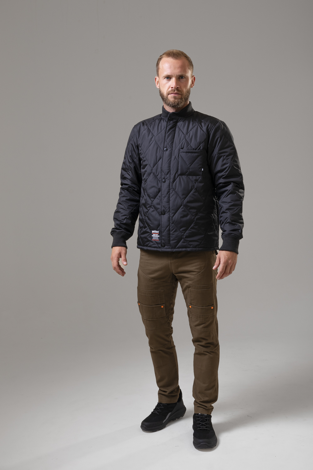- Удобство: манжеты и воротник из мягкого текстиля, лёгкая и комфортная посадка.