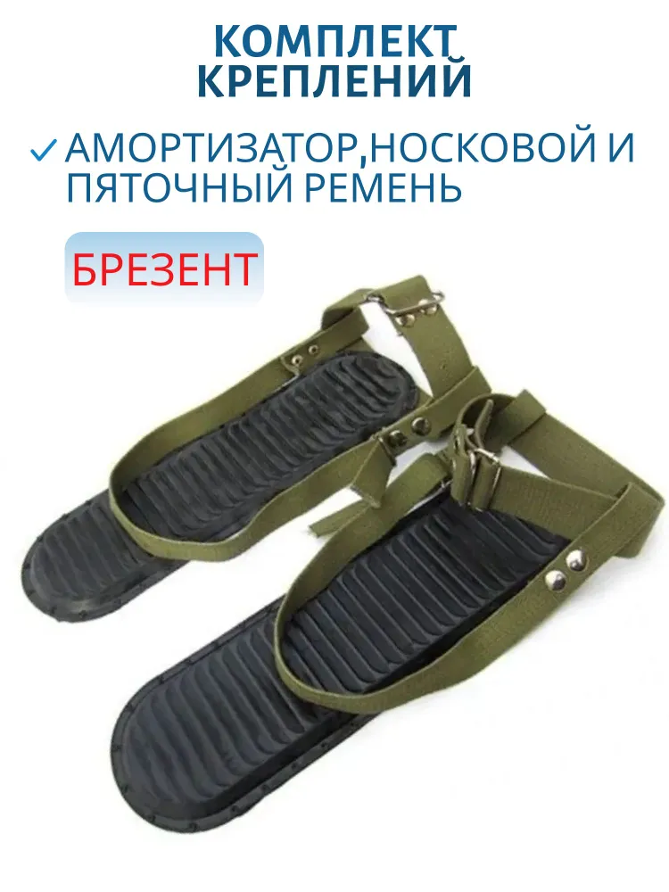 Крепления для охотничьих лыж из БРЕЗЕНТА с пяточным ремнем и амортизатором - 1 пара. Мягкие лыжные крепления для промысловых лыж в их традиционном и классическом виде. К петле добавлен ремень, охватывающий ногу сзади, над пяткой, и не дающий лыже соскользнуть с ноги. Данный вид крепления лыж для рыбалки и охоты изготавливается из БРЕЗЕНТА. Это крепление для лыж не требует специальной обуви, подходит на обычную обувь (сапоги, ботинки, валенки, унты и т.д.).