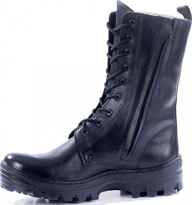 Глухой клапан предохраняет ногу от воздействия окружающей среды (пыль, вода, грязь). На внутренней стороне берец застежка “Молния".