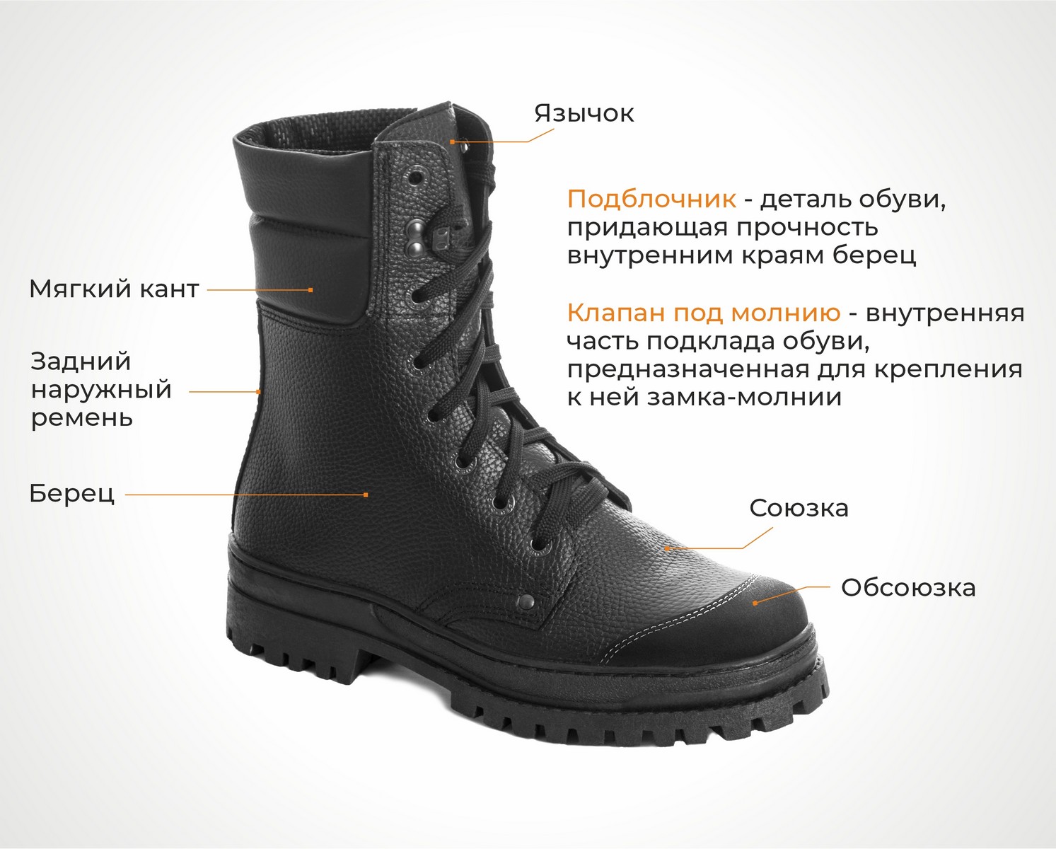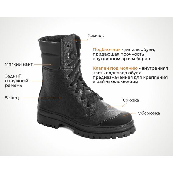 Берец, задний наружный ремень, декоративная деталь язычка, мягкий кант, язычок - из экокожи.