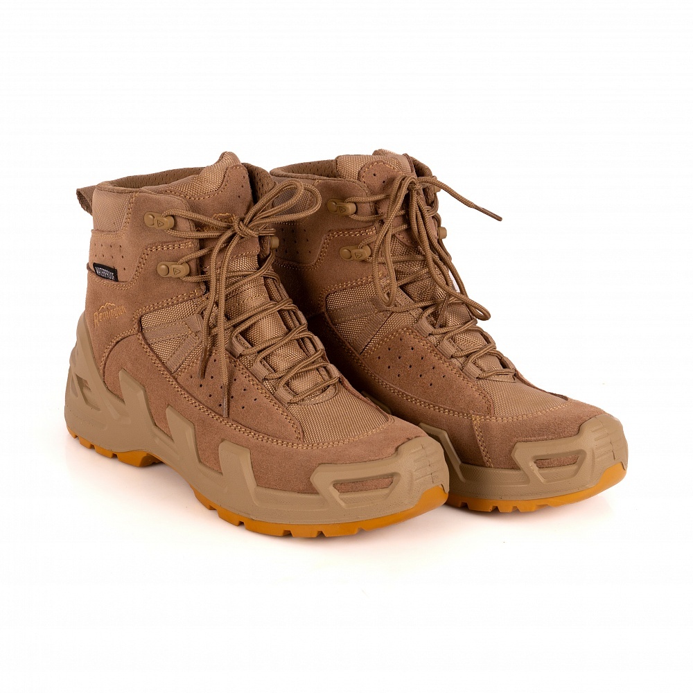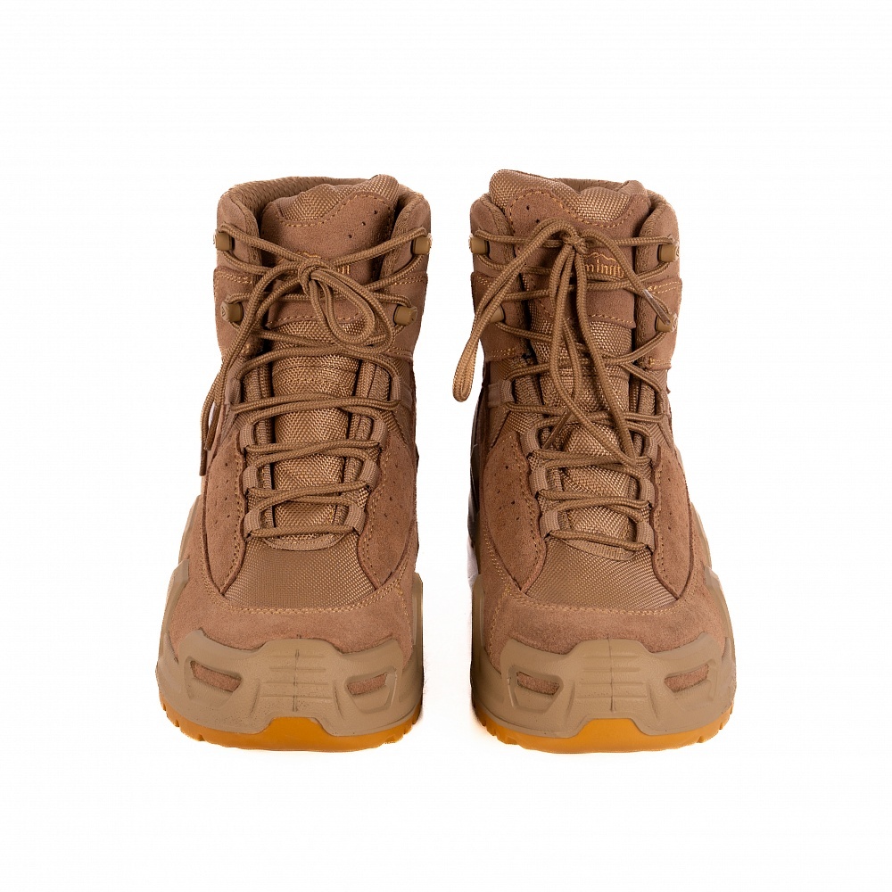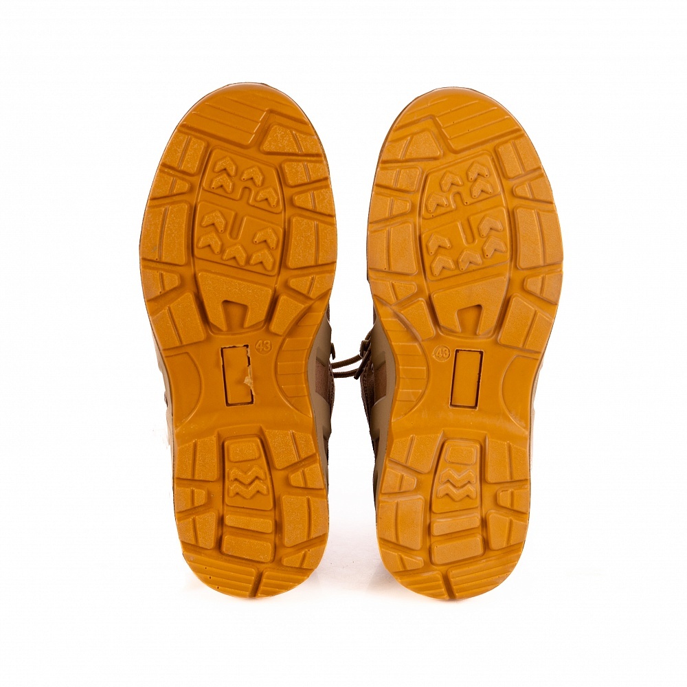 Лёгкая полиуретановая подошва с резиновыми вставками надёжно защищает боковые зоны от ударов и истирания, сохраняя амортизационные свойства даже при длительном использовании. Благодаря универсальности конструкции модель подойдёт как для туристов, так и для профессионалов в сфере охраны, охоты и тактических задач.
